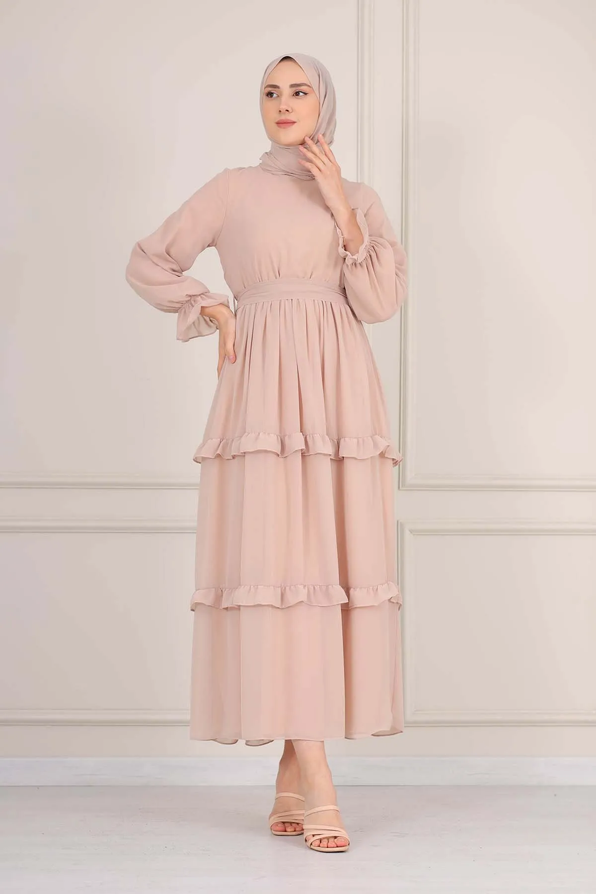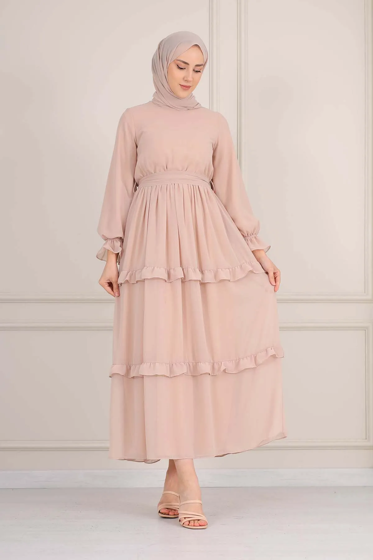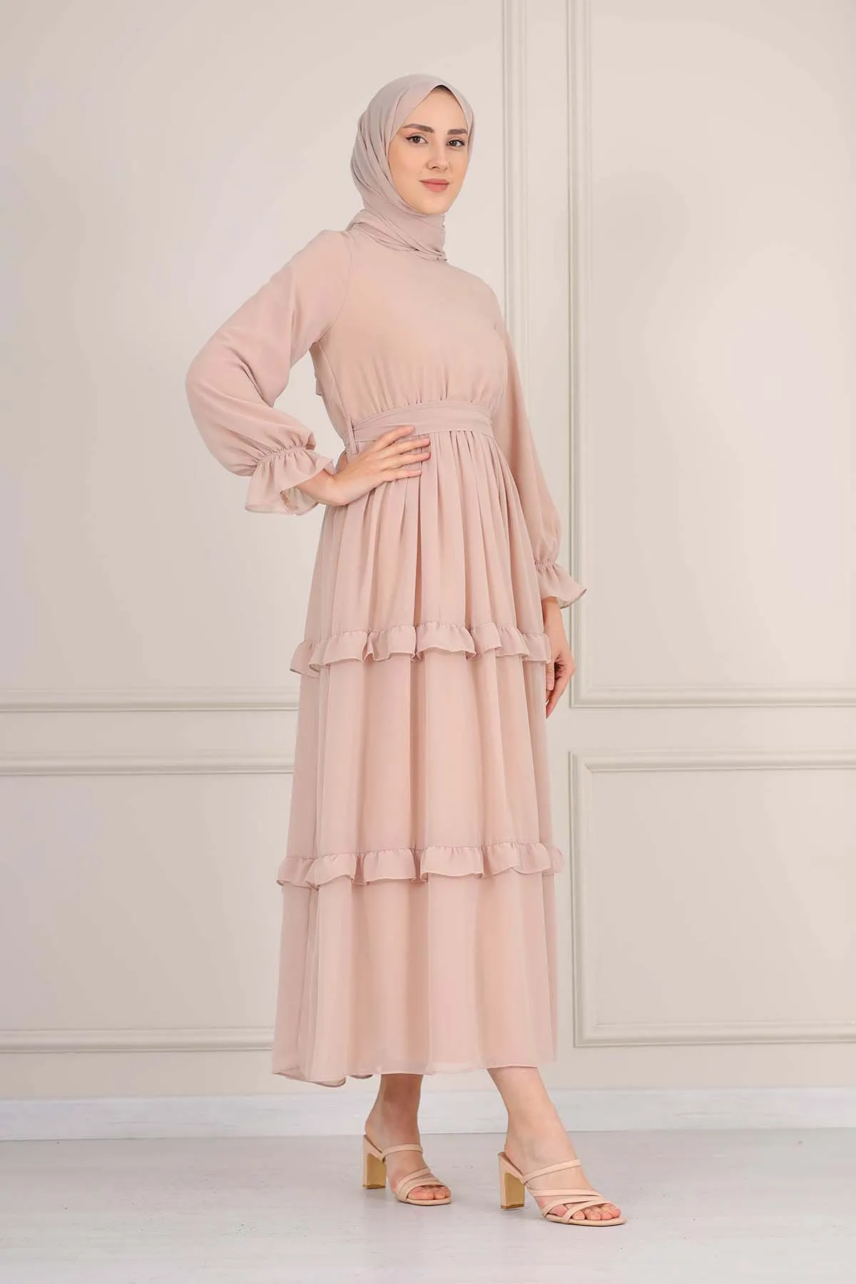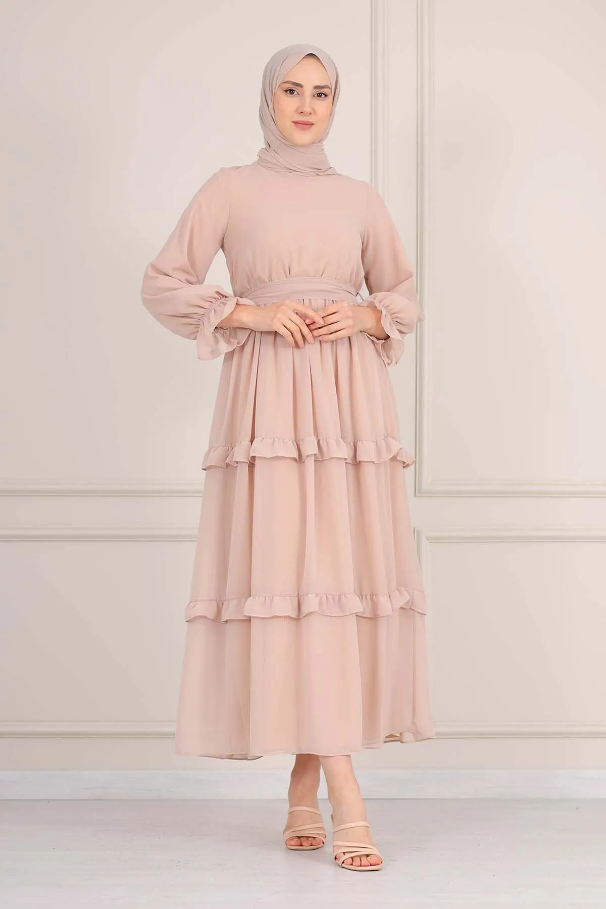 DescriptionReviews Description Made of chiffon fabric.It is a fabric that can be used in all four seasons.The product is lined.There is a button on the back.The belt is included in the product.Model Dimensions:Height: 170 cmChest: 82 cmWaist: 68 cmHips: 96 cmWeight: 55 (product in model size 38)Dress sizes: 36 - 38 - 40 - 42 - 44 Reviews Be the first to review this item There are no reviews yet