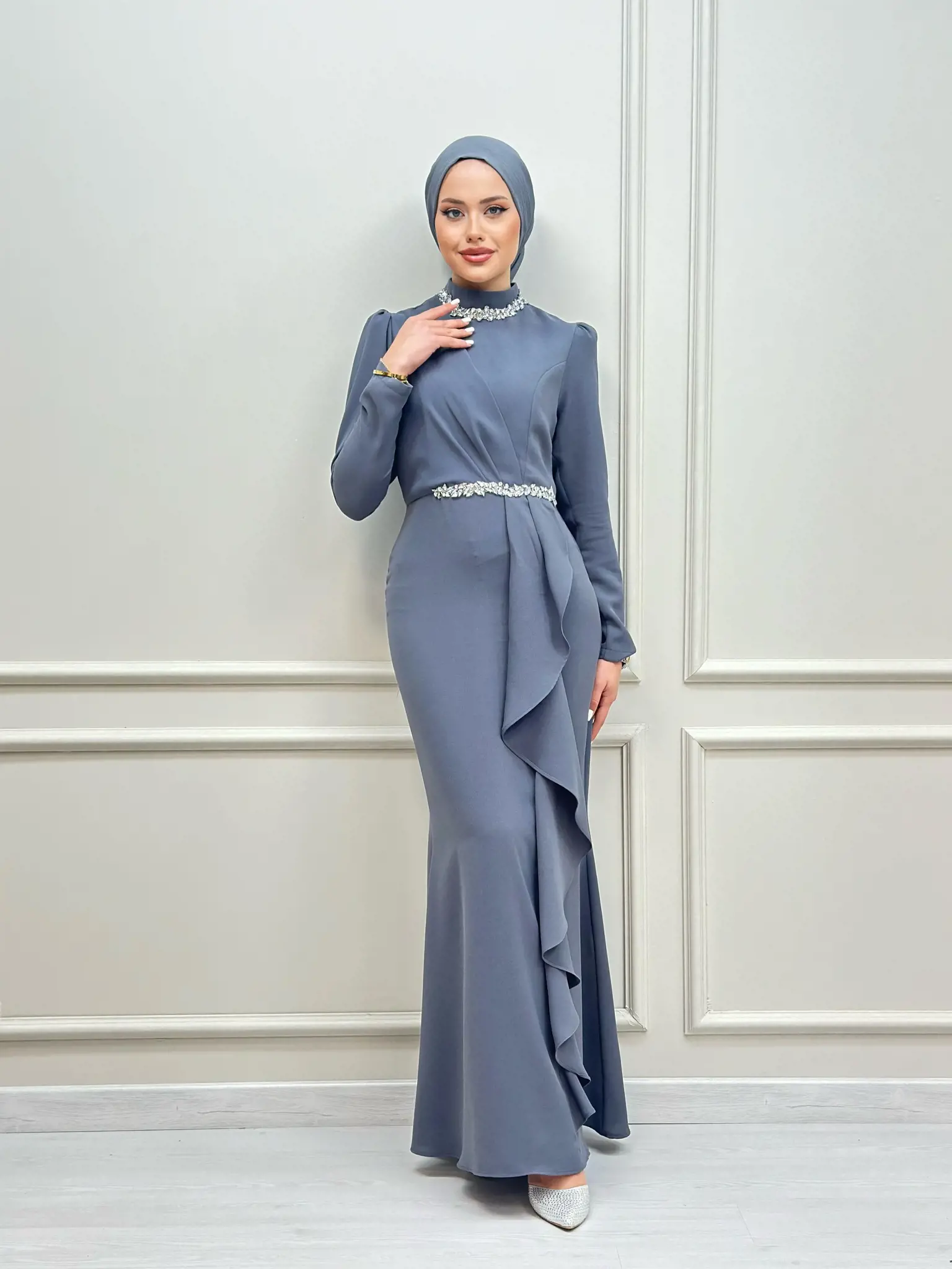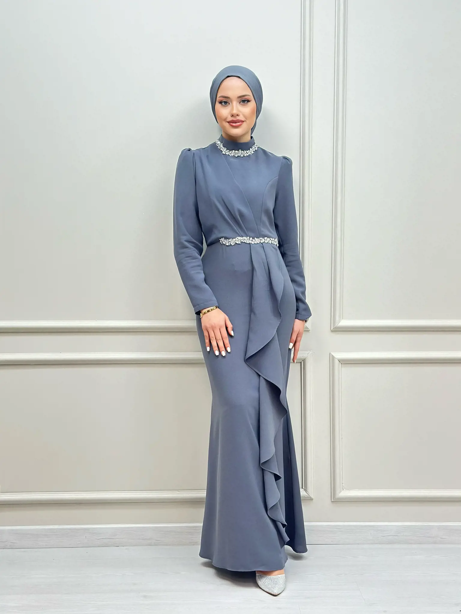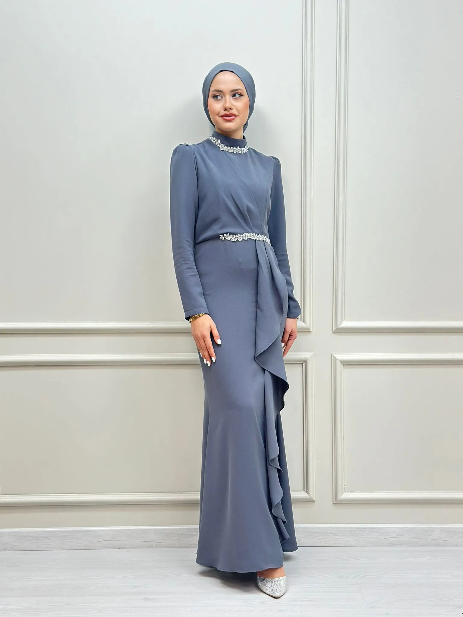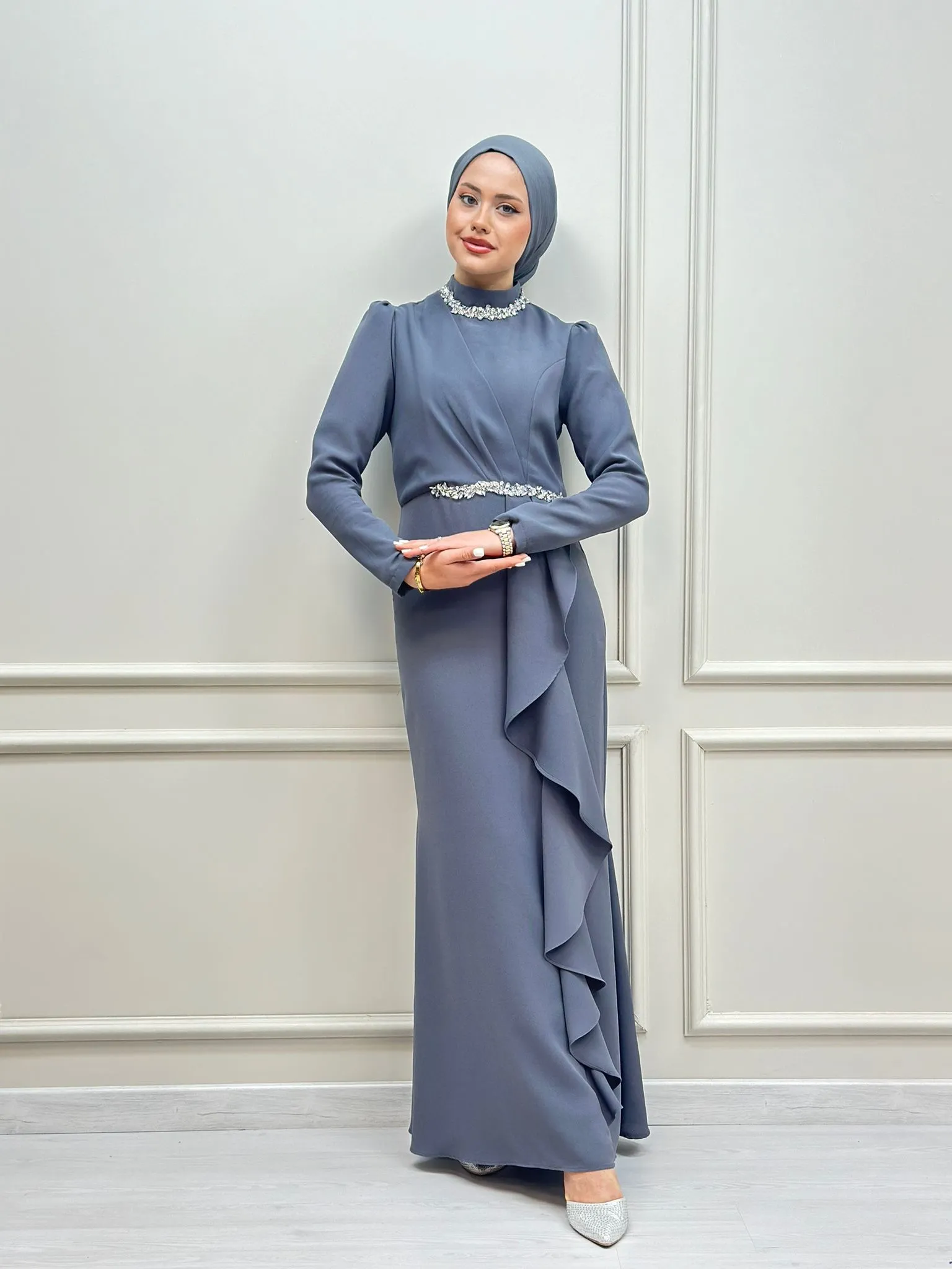 DescriptionReviews Description Dress with ruffle detailsDress sizes: 36 - 38 - 40 - 42 - 44 Reviews Be the first to review this item There are no reviews yet