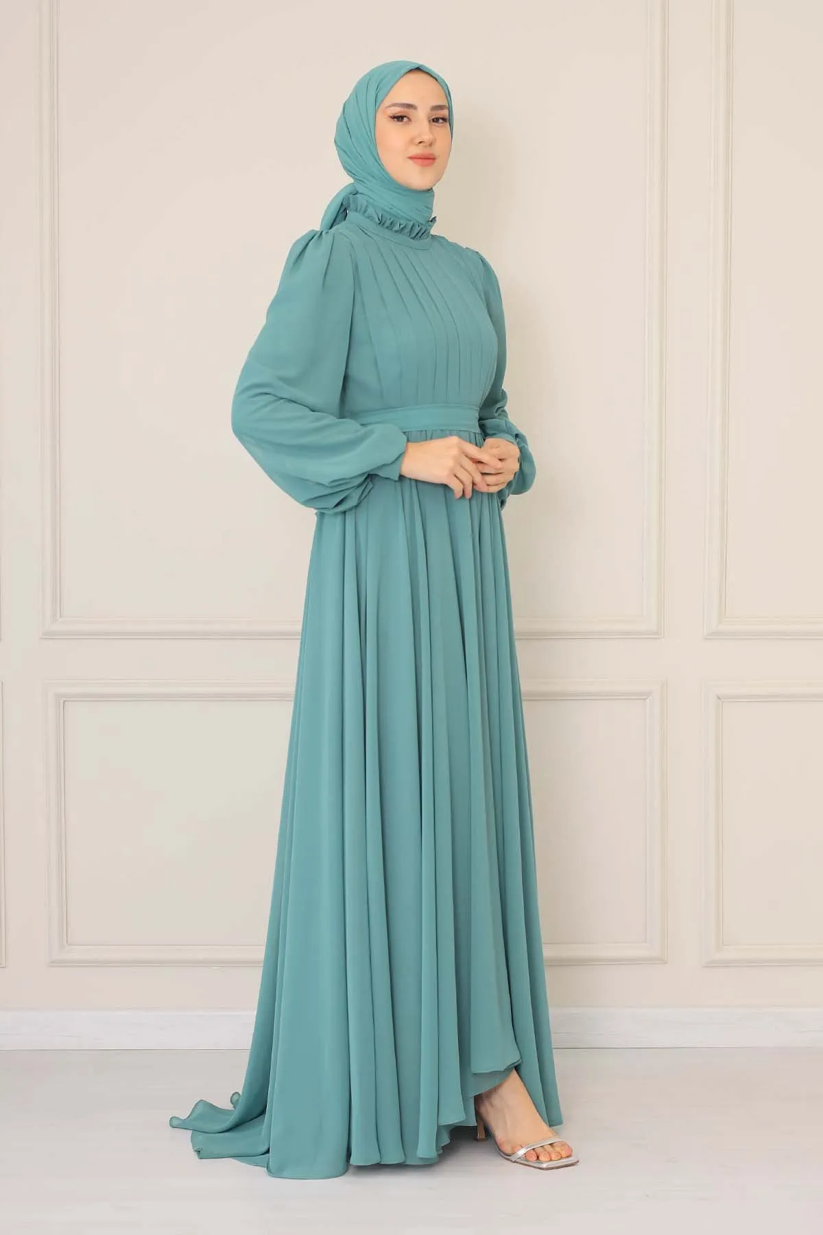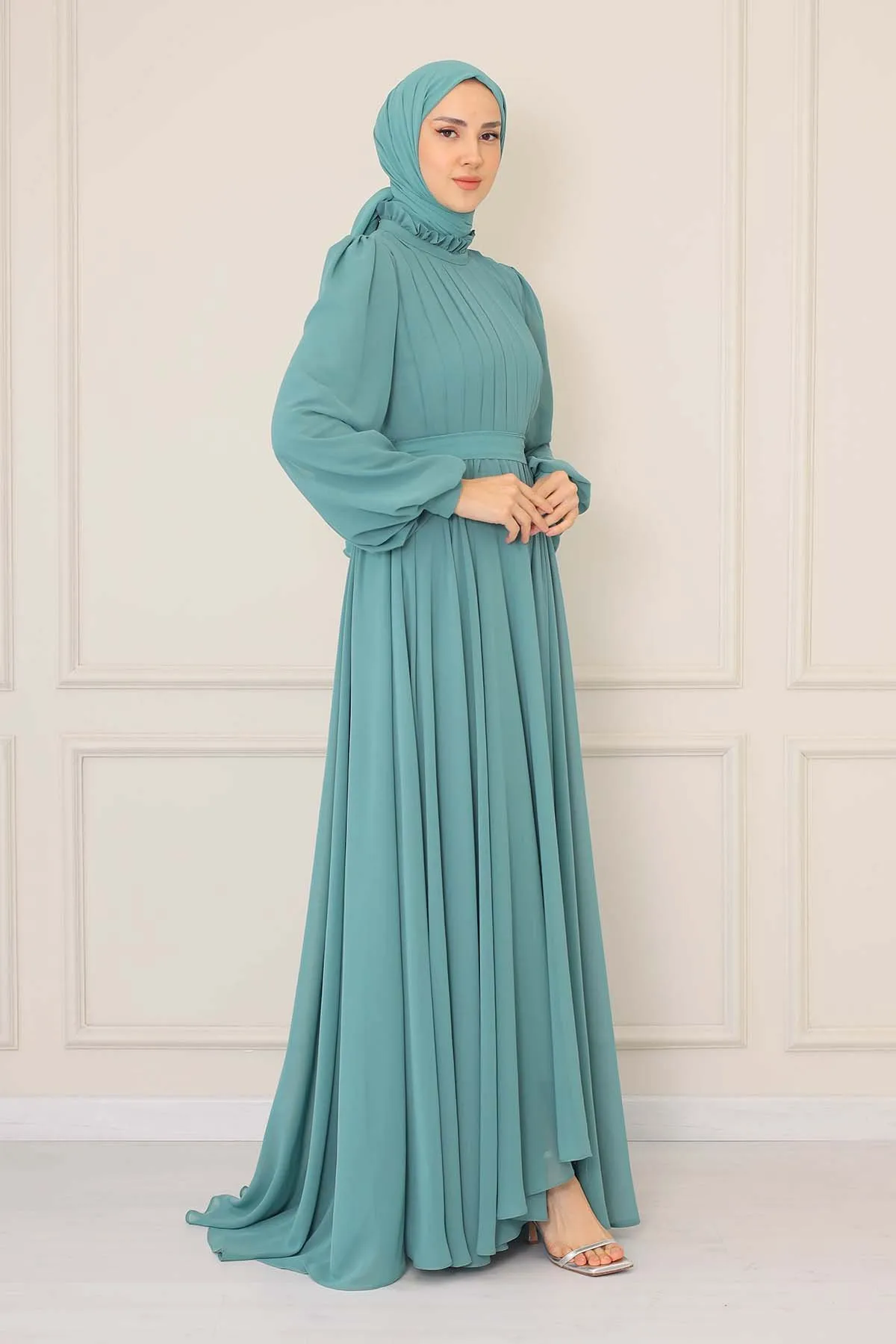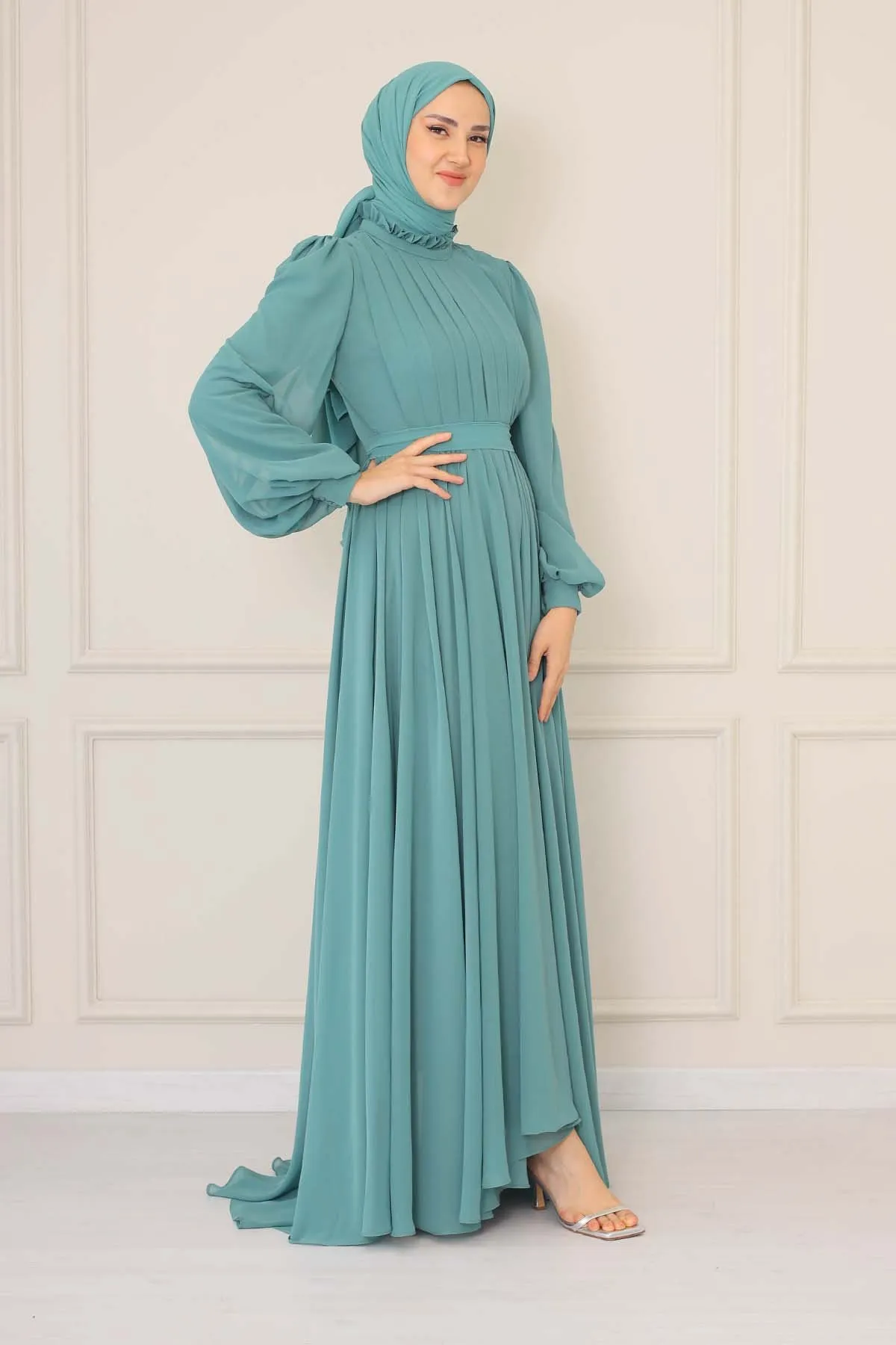 DescriptionReviews Description Made of chiffon fabric. It is a fabric that can be used in all four seasons.The product is lined.There is a zipper on the back.The belt is included in the product.Product front length: 170cm Back length: 175cmThe back of the product is longer than the front.Model Dimensions:Height: 170 cmChest: 82 cmWaist: 68 cmHips: 96 cmWeight: 55 (product in model size 38)Dress sizes: 36 - 38 - 40 - 42 - 44 Reviews Be the first to review this item There are no reviews yet
