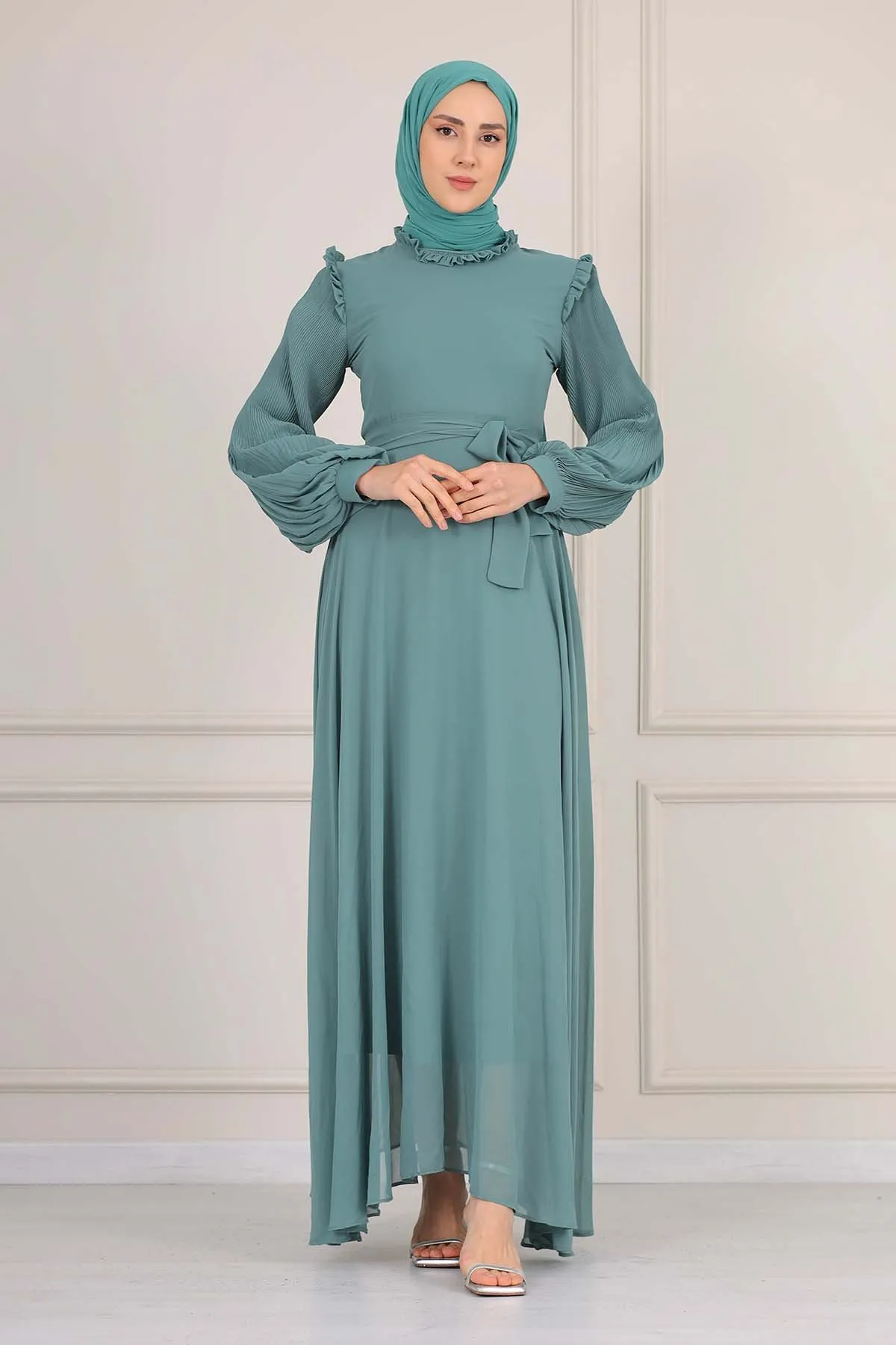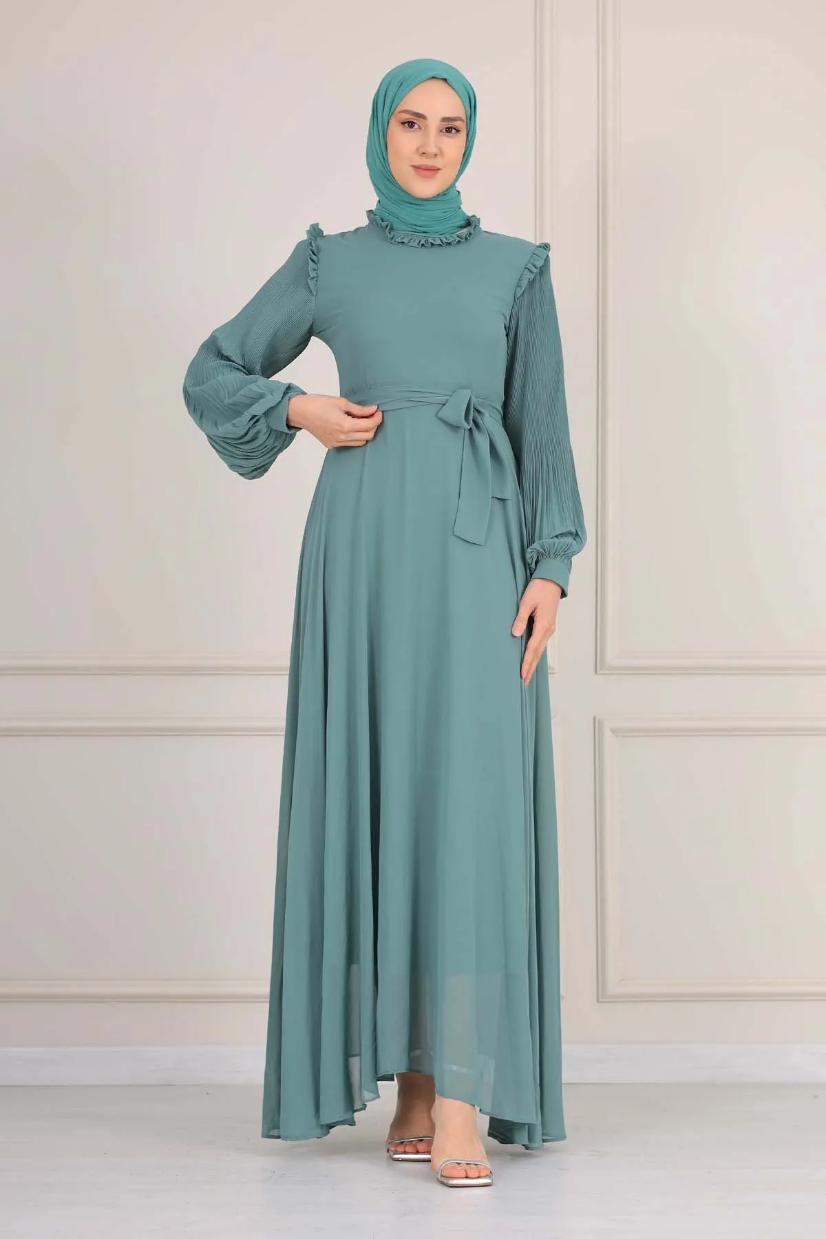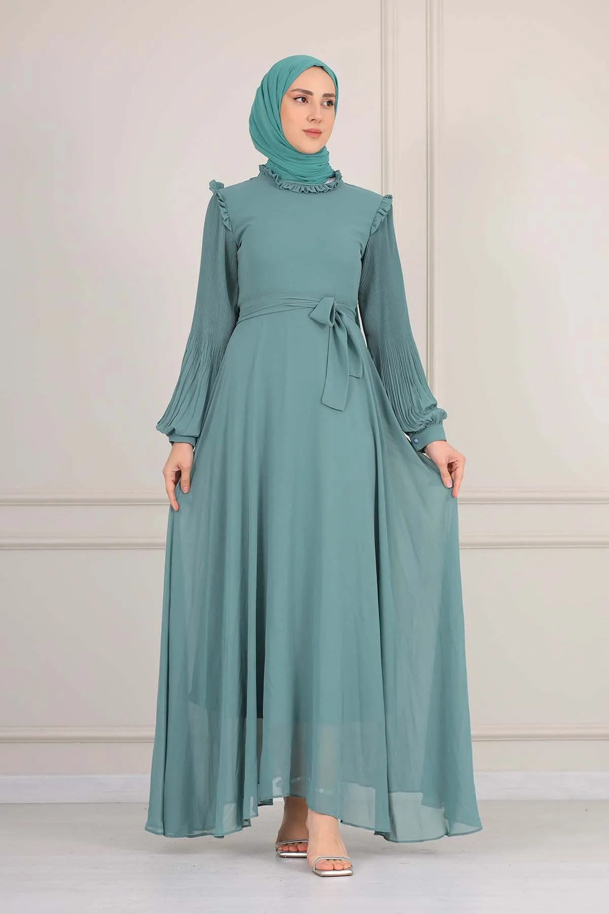 DescriptionReviews Description Made of chiffon fabric. It is a fabric that can be used in all four seasons.The product is lined.The belt is included in the product.Model Dimensions:Height: 170 cmChest: 82 cmWaist: 68 cmHips: 96 cmWeight: 55 (product in model size 38)Dress Sizes: 38 - 44 Reviews Be the first to review this item There are no reviews yet
