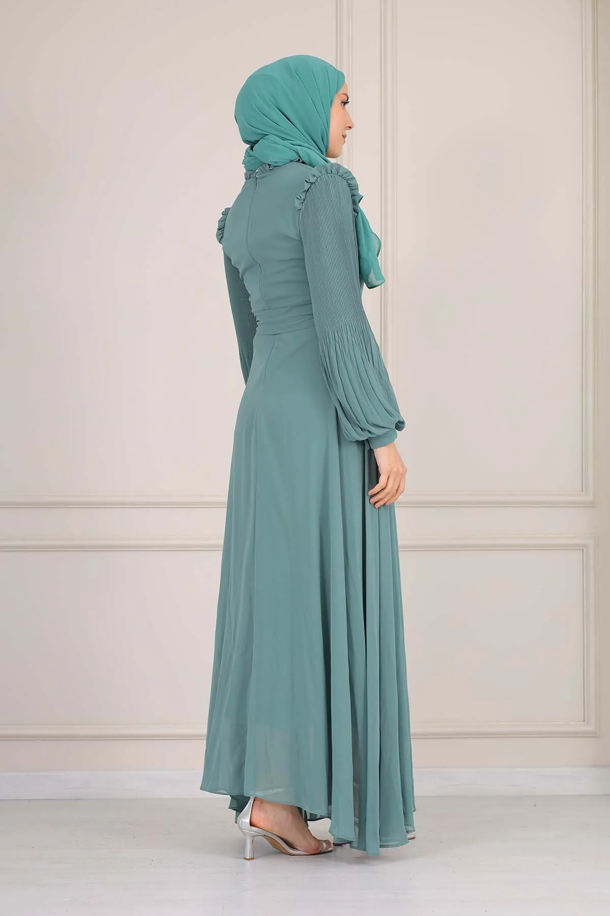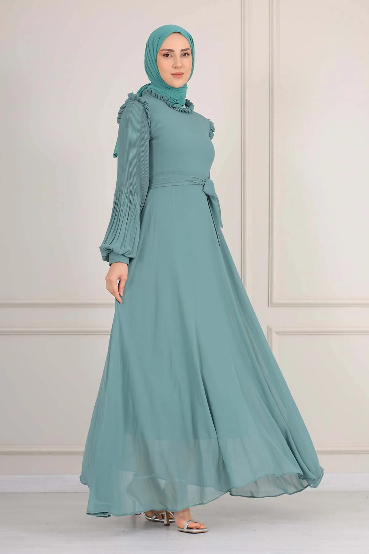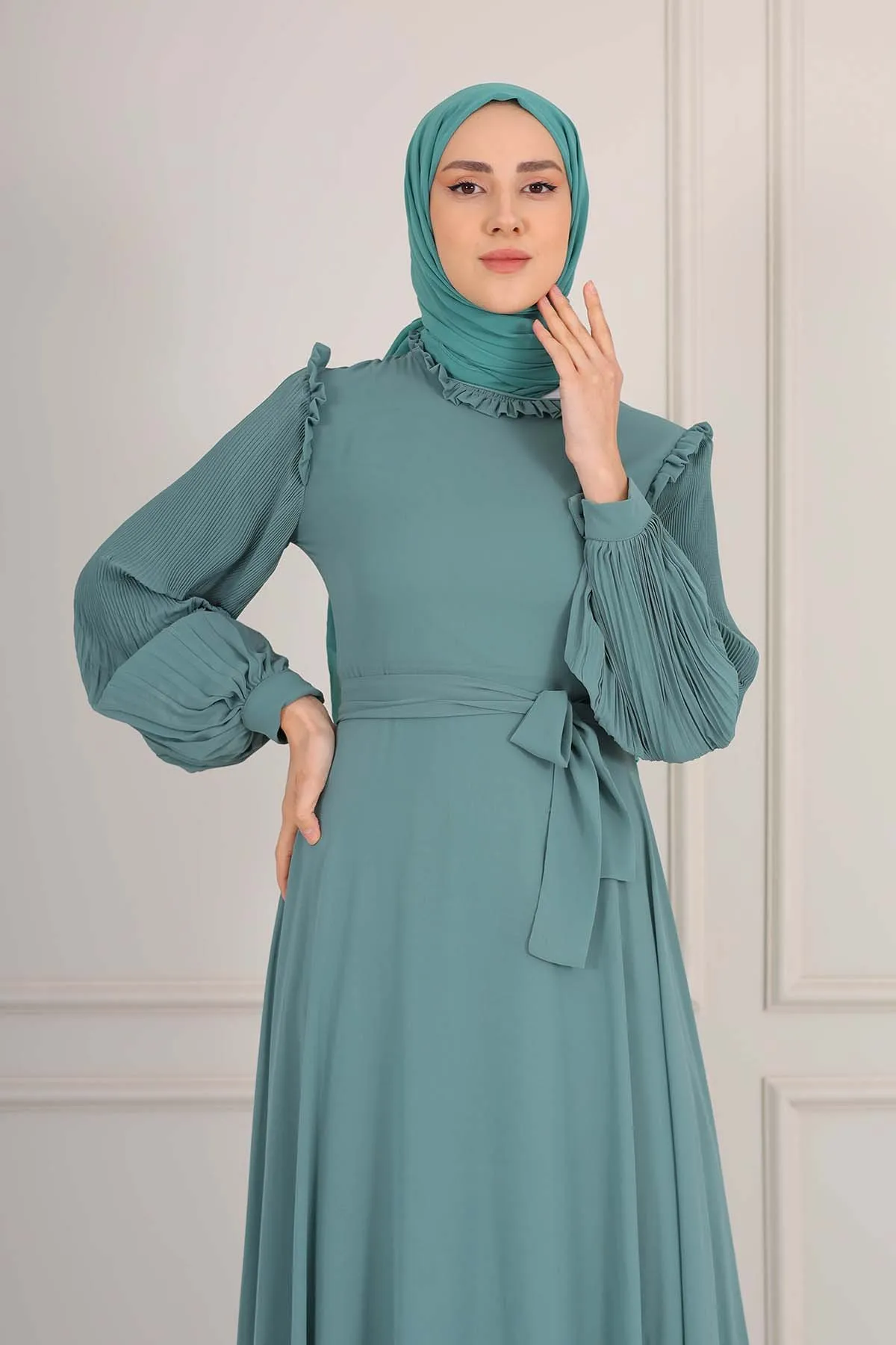 DescriptionReviews Description Made of chiffon fabric. It is a fabric that can be used in all four seasons.The product is lined.The belt is included in the product.Model Dimensions:Height: 170 cmChest: 82 cmWaist: 68 cmHips: 96 cmWeight: 55 (product in model size 38)Dress Sizes: 38 - 44 Reviews Be the first to review this item There are no reviews yet