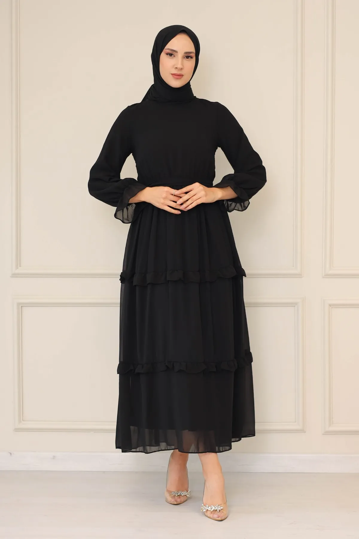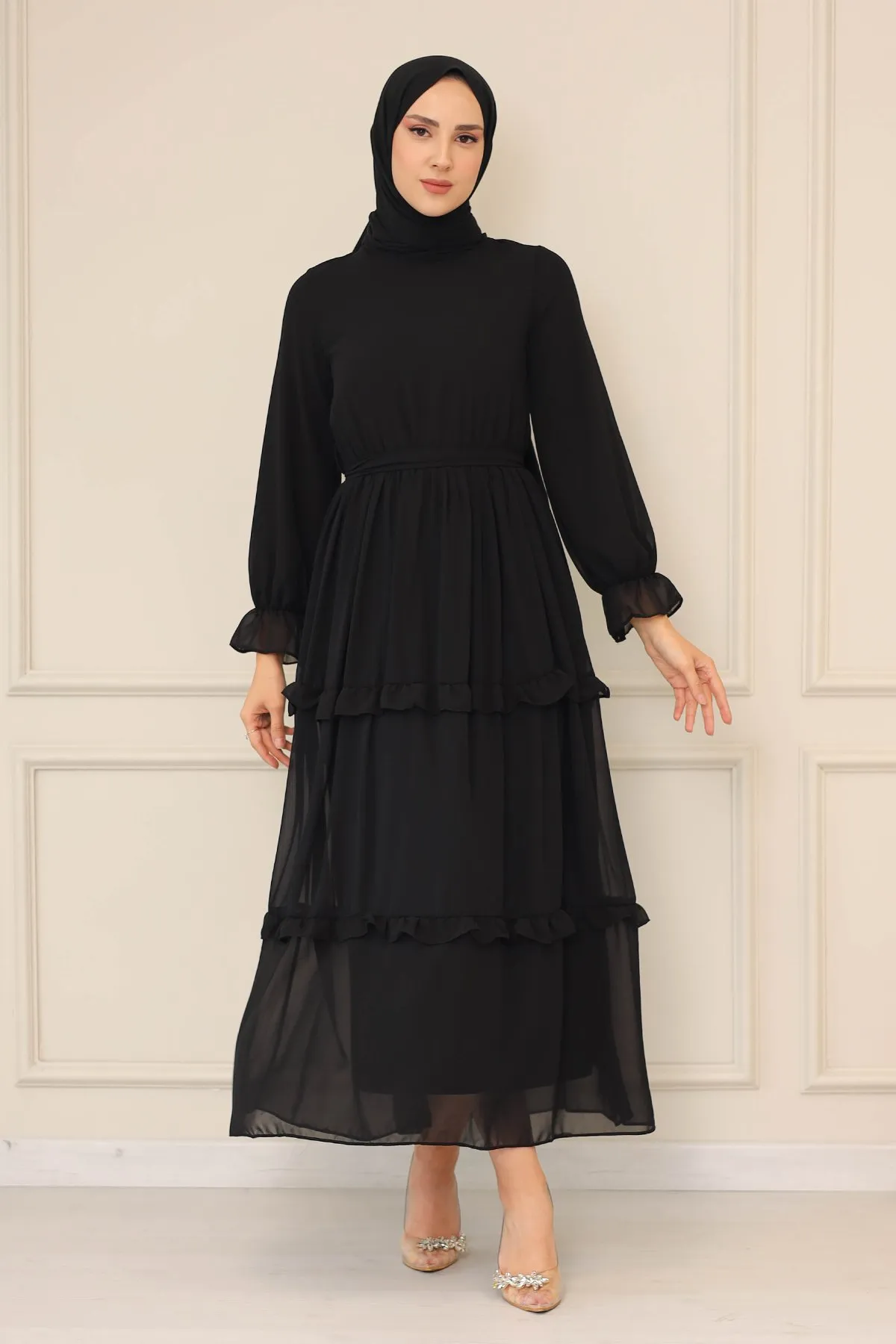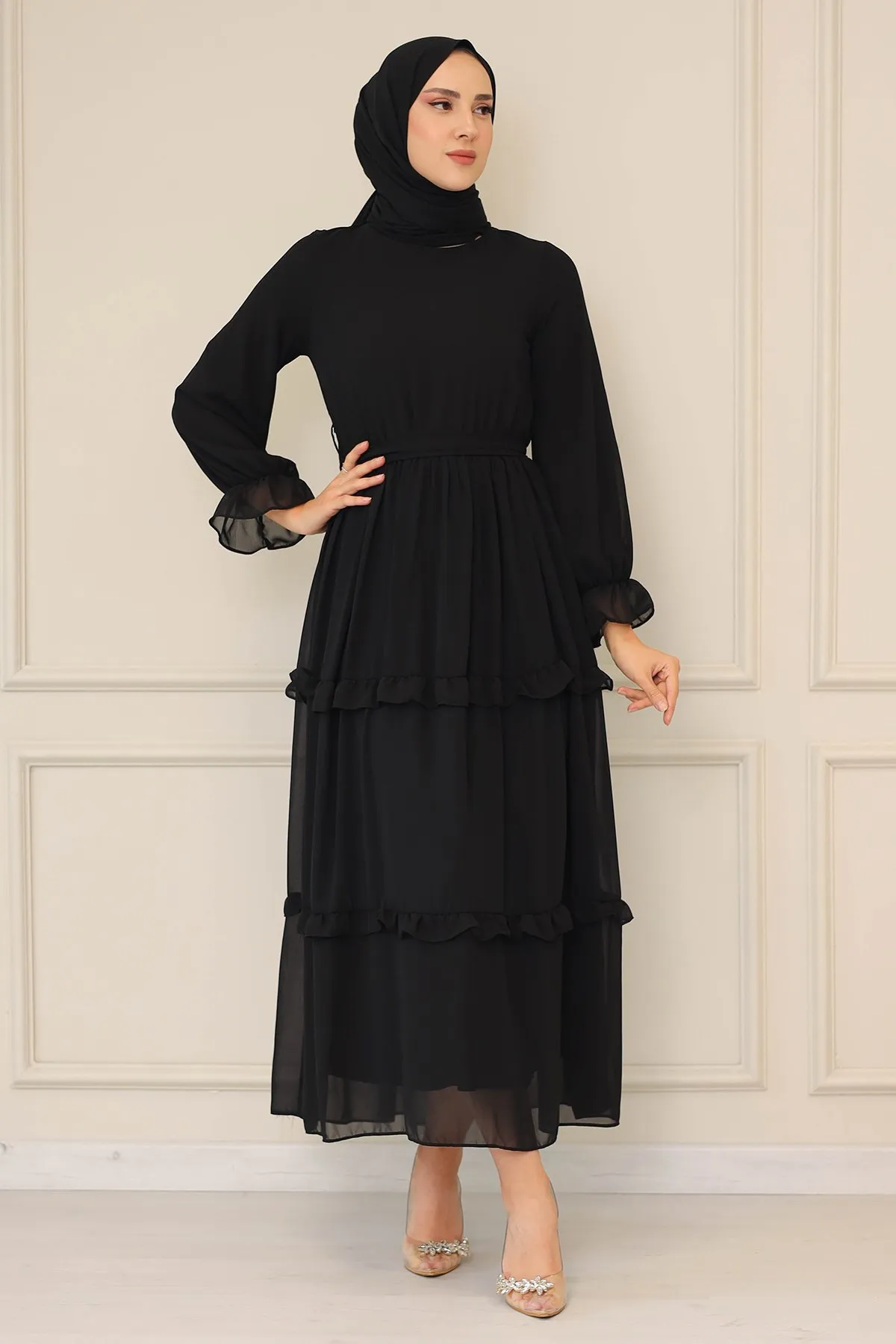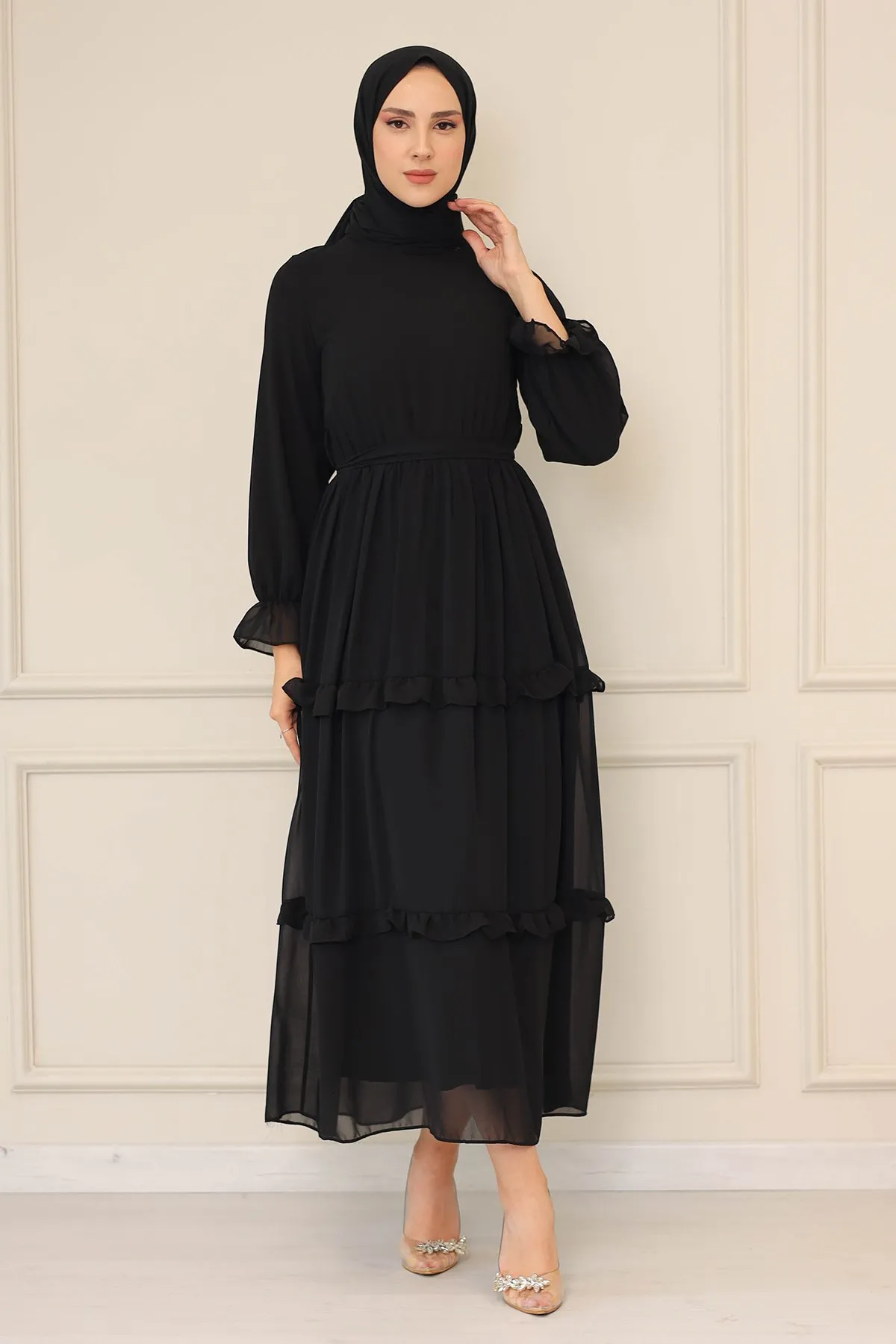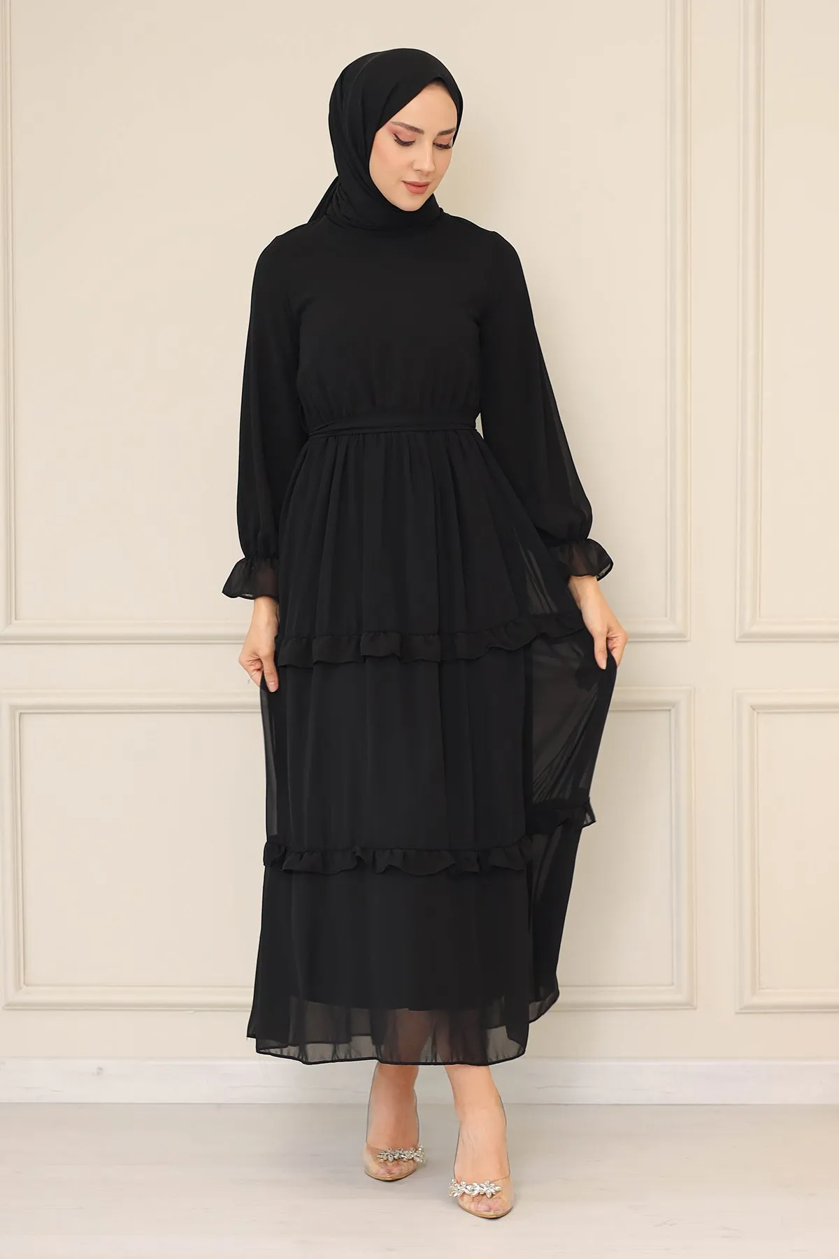 DescriptionReviews Description Made of chiffon fabric. It is a fabric that can be used in all four seasons.The product is lined.The belt is included in the product.Model Dimensions:Height: 170 cmChest: 82 cmWaist: 68 cmHips: 96 cmWeight: 55 (product in model size 38)Dress sizes: 36 - 38 - 40 - 42 Reviews Be the first to review this item There are no reviews yet