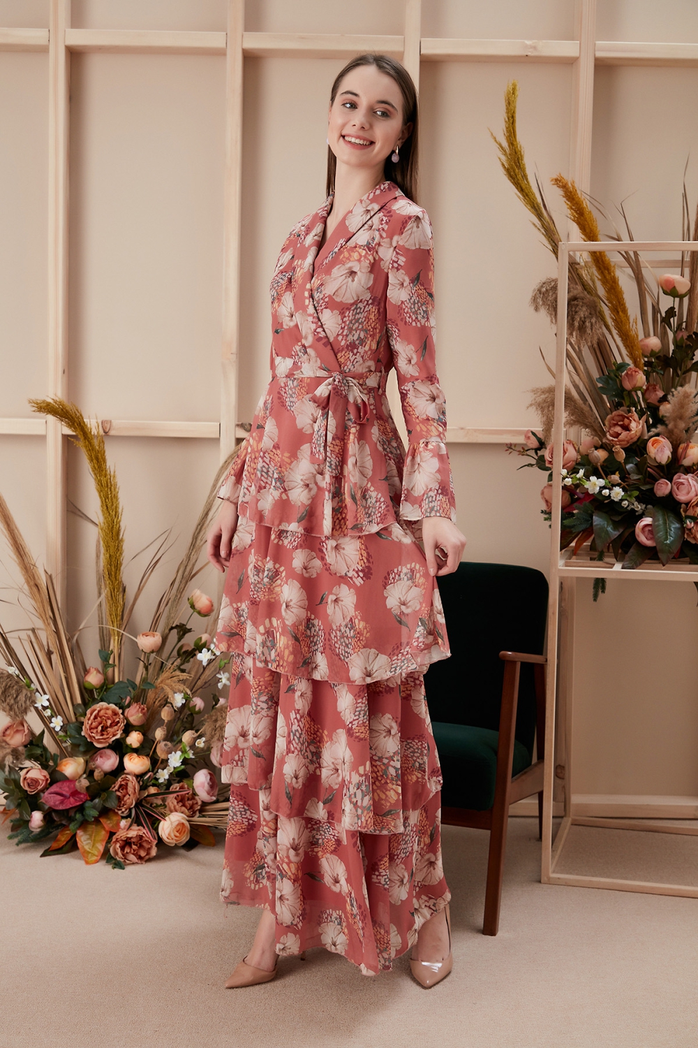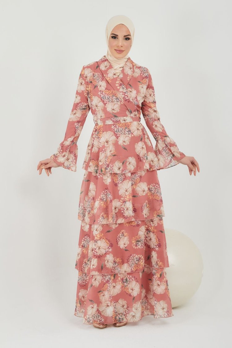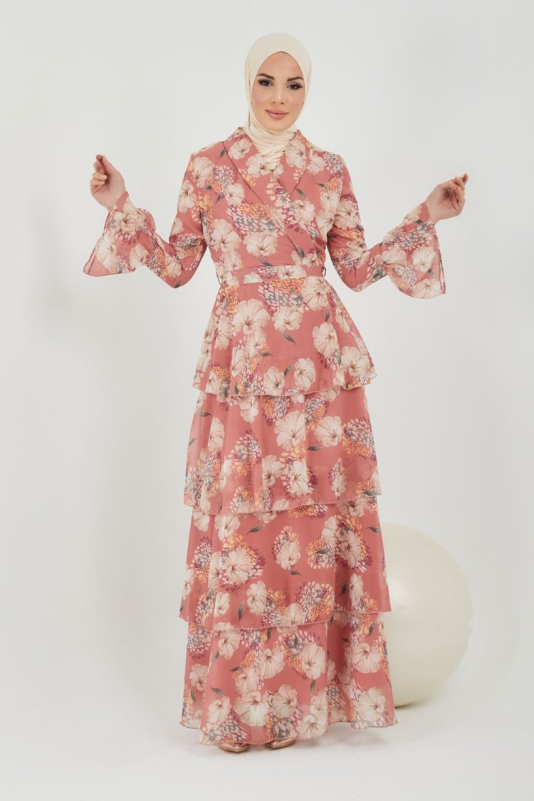 فستان شيفون يومي وردي فاتح 38-40-42-44-46