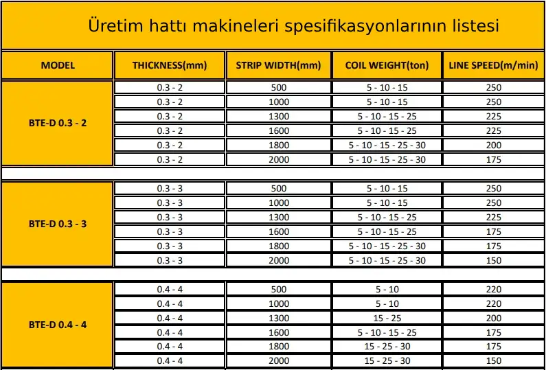 Our slitting lines can produce from a minimum of 0.20mm to a maximum of 16mm, and from a minimum of 300mm to a maximum of 2500mm, and are designed for precise and fast production.