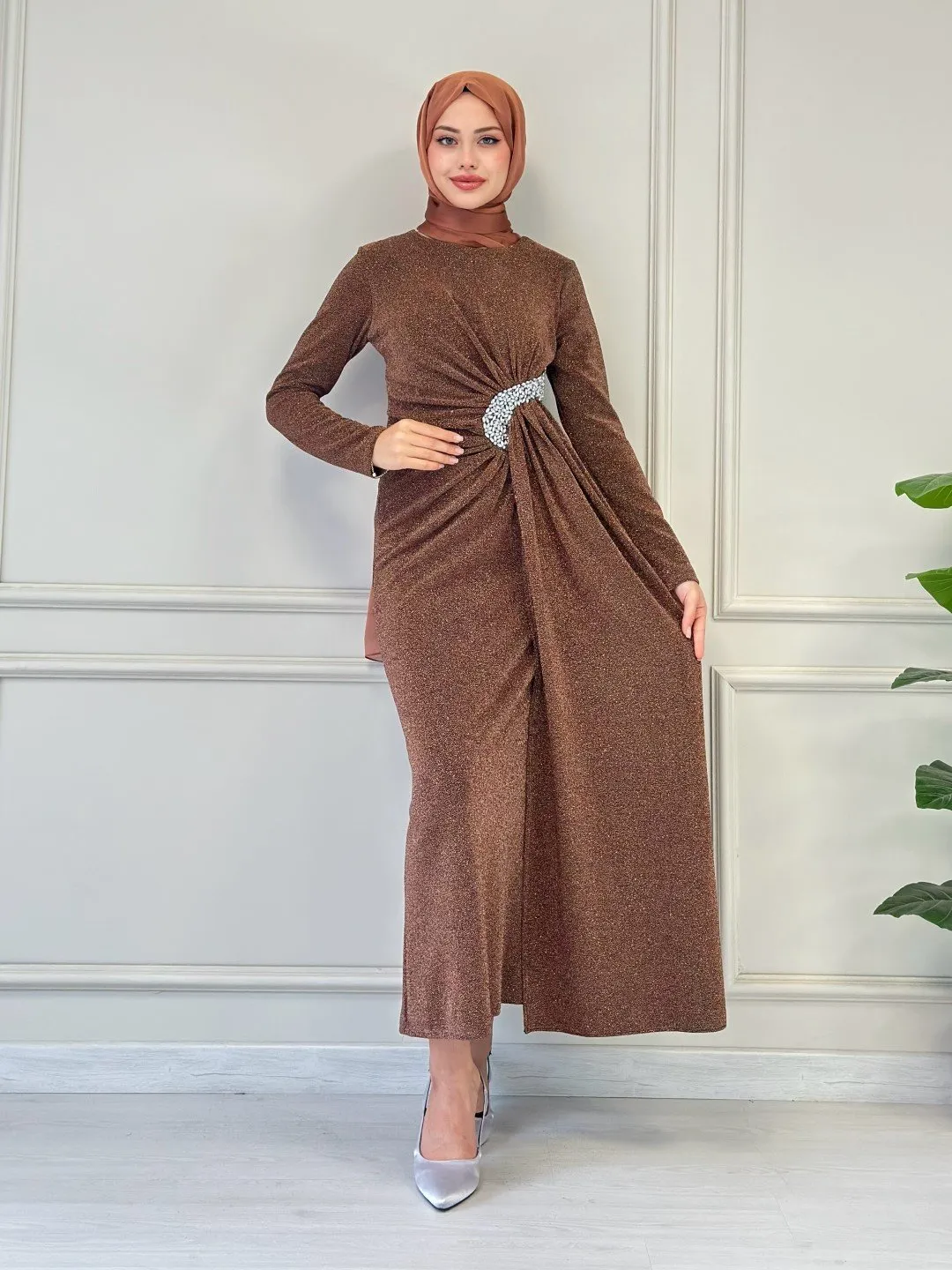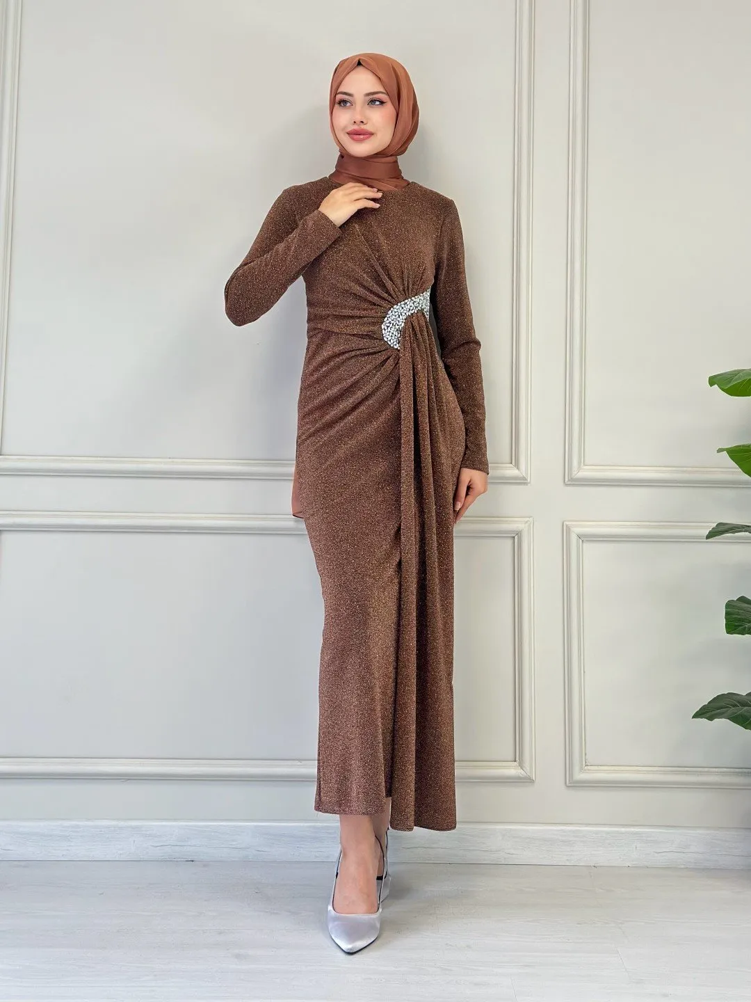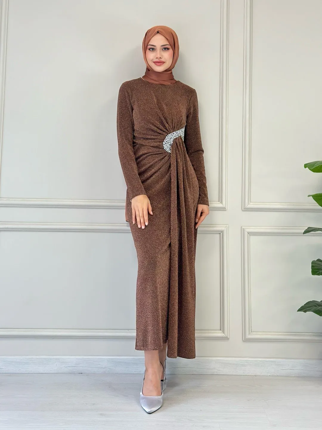 DescriptionReviews Description Evening dress studded with stonesDress sizes: 36 - 38 - 40 - 42 - 44 Reviews Be the first to review this item There are no reviews yet