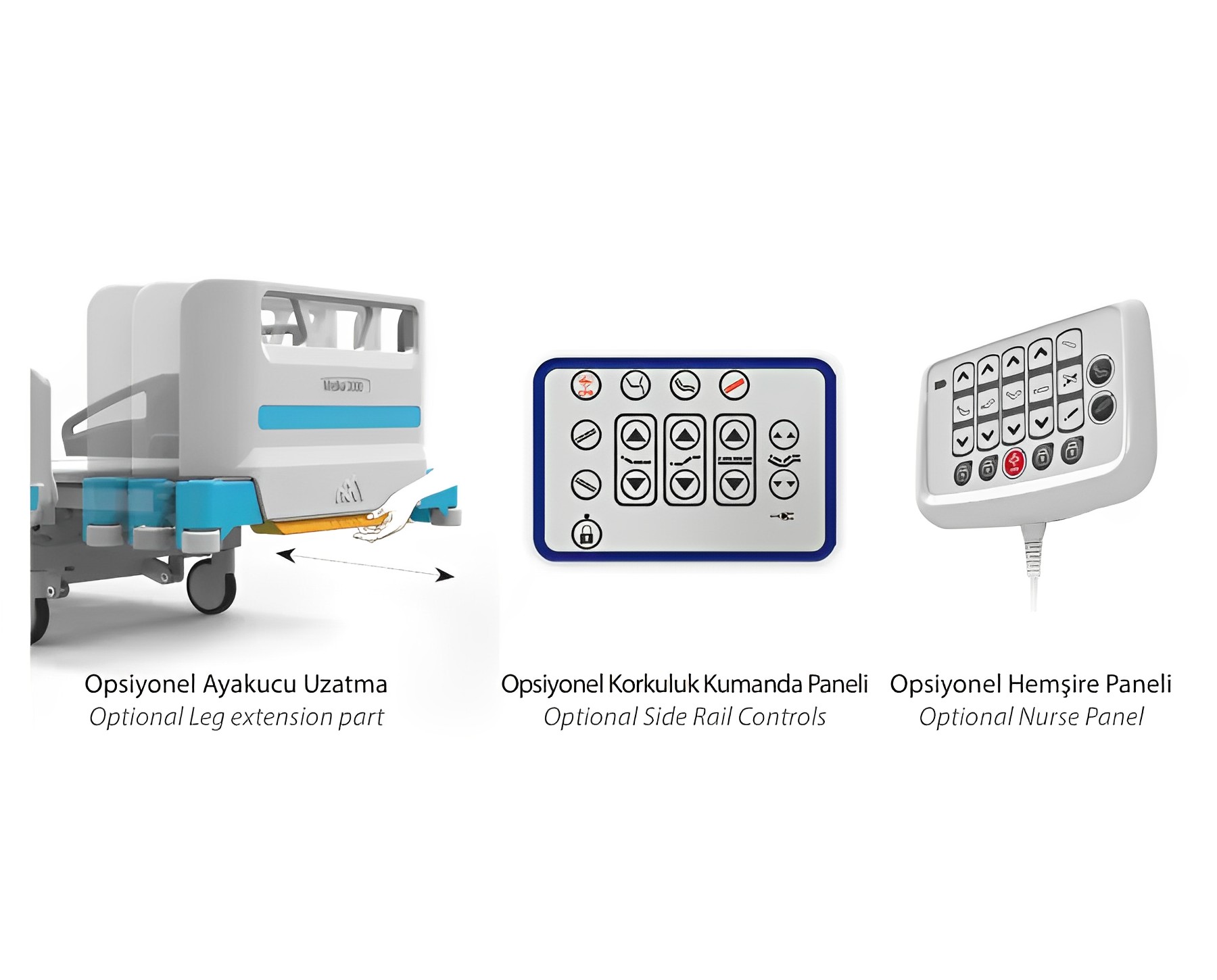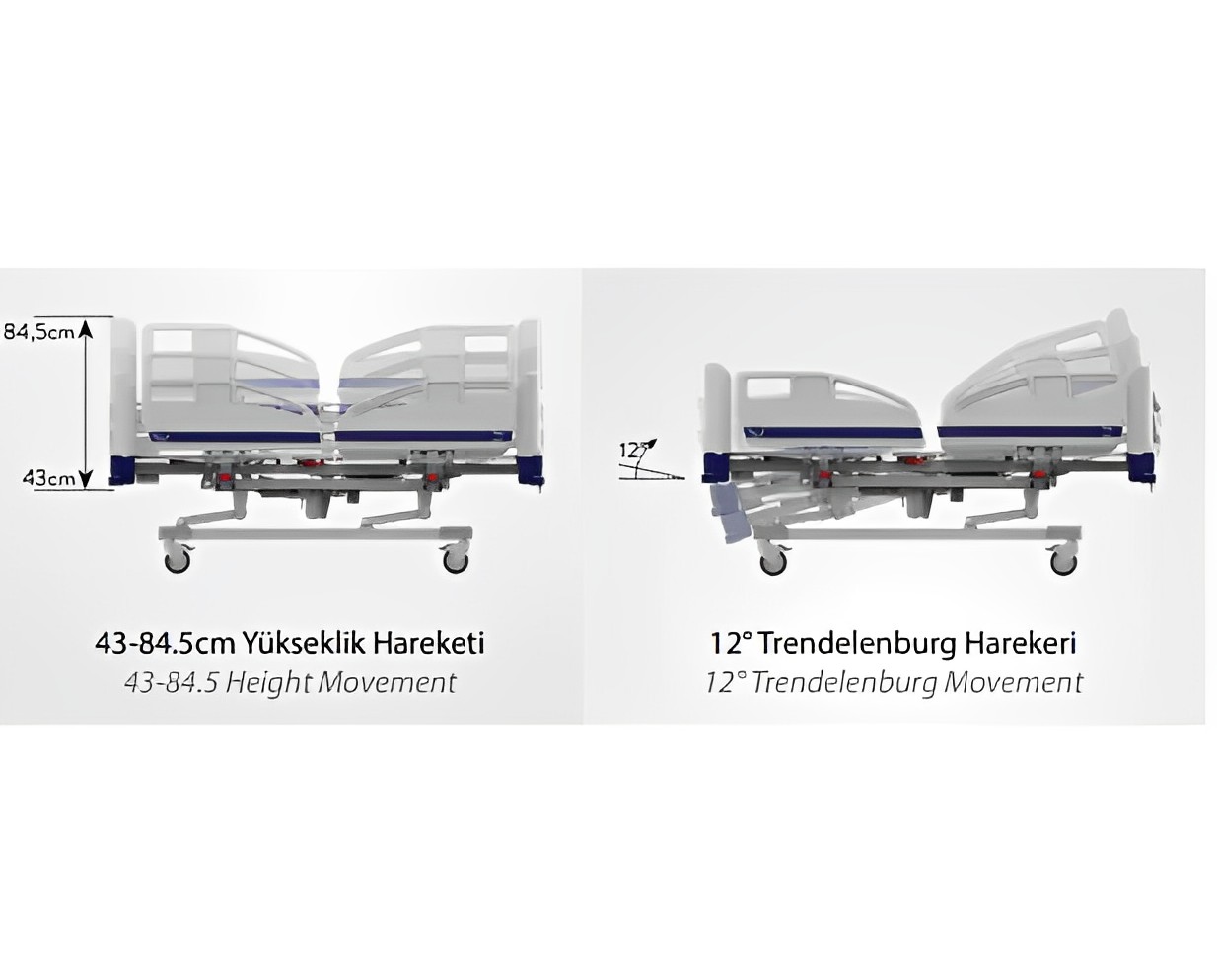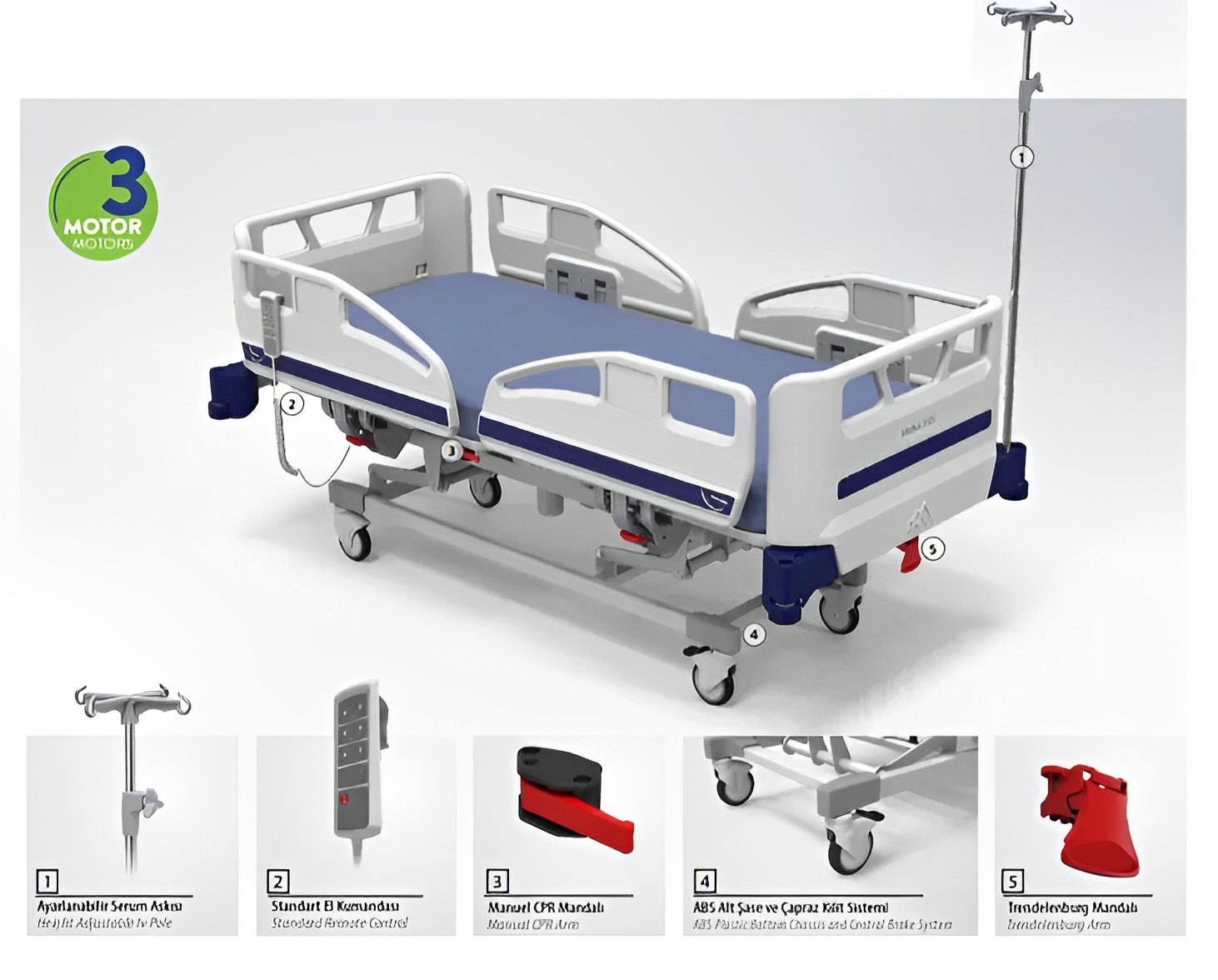 AçıklamaDeğerlendirmeler Açıklama Sessiz çalışma için min IPX4 korumaya sahip lineer motorlar.El kumandası.Elektronik olarak sırt, ayak ve yükseklik hareketi.Manuel ve Elektronik CPR.Manuel trendelenburg hareketi.Polipropilen (PP) malzemeden imal edilmiş yan korkuluklar ve sökülüp takılabilen başucu ve ayakucu panelleri.ABS malzemeden imal edilmiş 4 parçalı yatma yüzeyi.Diz hareketlerini kademeli mekanizma ile ayarlayabilme.360° dönebilen çapraz kilitli tekerler (125 mm).Plastik koruyucu çarpma tamponları.İdrar torbası askılığı.Aksesuar Yuvaları.Yüksekliği ayarlanabilir serum askısı.Nano seramik kaplı elektrostatik toz boyalı metal aksam.Sırt kayması.Korkuluklarda açı göstergesi.85 x 190 x 12 cm 28DNS şilte.Korkuluk Kumanda Paneli.Hemşire Paneli.Reklendirilebilir başlık ve korkuluk etiketleri.X-Ray Kaset taşıyıcı.Kilitlenebilir başlıklar.Yatak altı aydınlatma.Dosyalık.Ayakucu uzatma.HPL yatma yüzeyi.Batarya.Oksijen tüplük.Defibrilatör sehpası.Traksiyon seti. Değerlendirmeler Bu ürünü ilk değerlendiren siz olun Henüz değerlendirme yapılmadı.