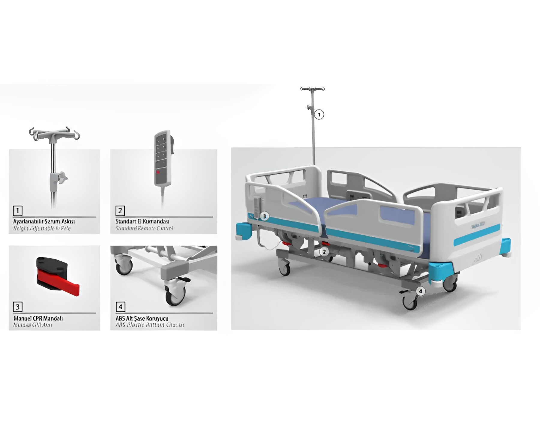 وصفمراجعات وصف محركات خطية ذات حماية كحد أدنى للتشغيل الهادئ.التحكم باليد.حركة إلكترونية للظهر والقدم والارتفاع.الإنعاش القلبي الرئوي اليدوي والإلكتروني.درابزين جانبي وألواح رأسية ولوح قدم قابلة للإزالة مصنوعة من مادة البولي بروبيلين.سطح الاستلقاء مكون من 4 قطع.القدرة على ضبط حركات الركبة بآلية تدريجية.عجلات مقفلة دوارة بزاوية 360 درجة (125 ملم).مصدات الصدمات البلاستيكية الواقية.شماعة كيس البول.فتحات الملحقات.ارتفاع قابل للتعديل.مؤشر زاوية على السور.مرتبة 85x190 x 12 سم.لوحة تحكم الدرابزين.لوحة الممرضة.تسميات رأسية ودرابزينية يمكن التعرف عليها.حامل كاسيت للأشعة السينية.رؤوس قابلة للقفل.إضاءة تحت السرير.حامل الملف.تمديد مسند القدمين.بطارية.خزان الأوكسجين. مراجعات كن أول من يراجع هذا البند لا توجد توصيات بعد