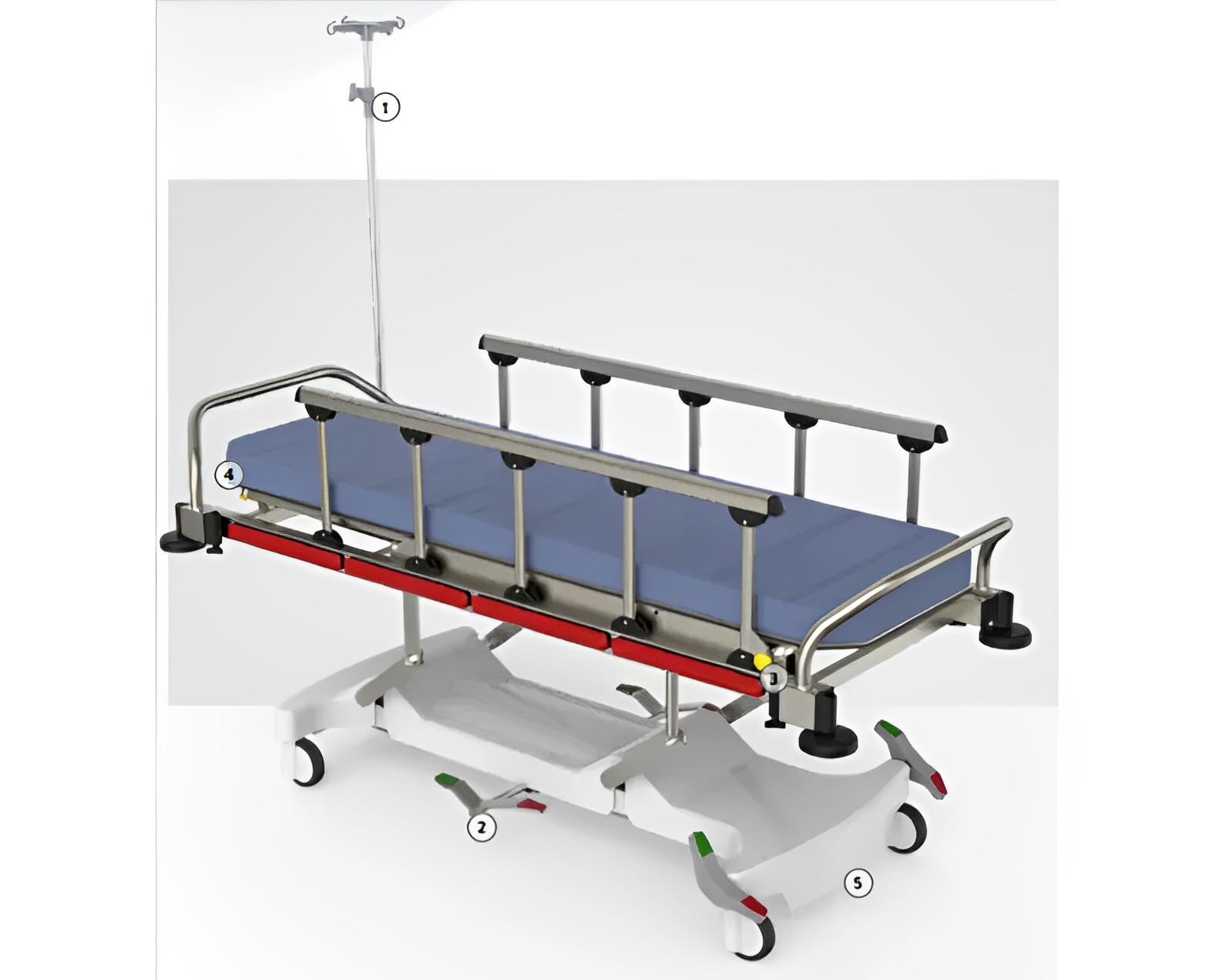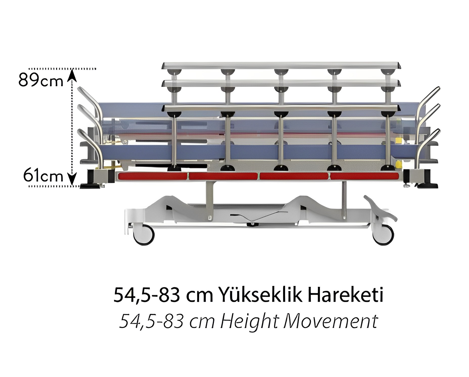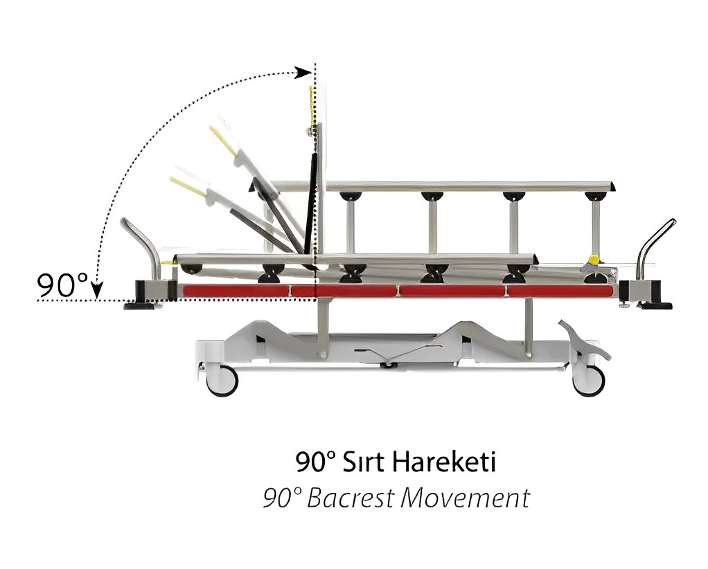 DescriptionReviews Description General featuresNano ceramic electrostatic powder coating. Metal parts are coatedThe two-piece reclining surface is made of compact materialMetal side rails that can be opened and closed easilyFourth column stand and crash pads on the four cornersTelescopic adjustable IV polePush bars are made of stainless steel360 degree swivel wheels with central braking system (150mm)Height adjustment with hydraulic controlGas spring control in rear adjustmentGas spring control by Trendelenburg adjustmentABS plastic coated undercarriagePatient restraint beltMattress 60x190x8 cm 28 DNSX-ray tape holderOptional tube holder feature Reviews Be the first to review this item There are no reviews yet