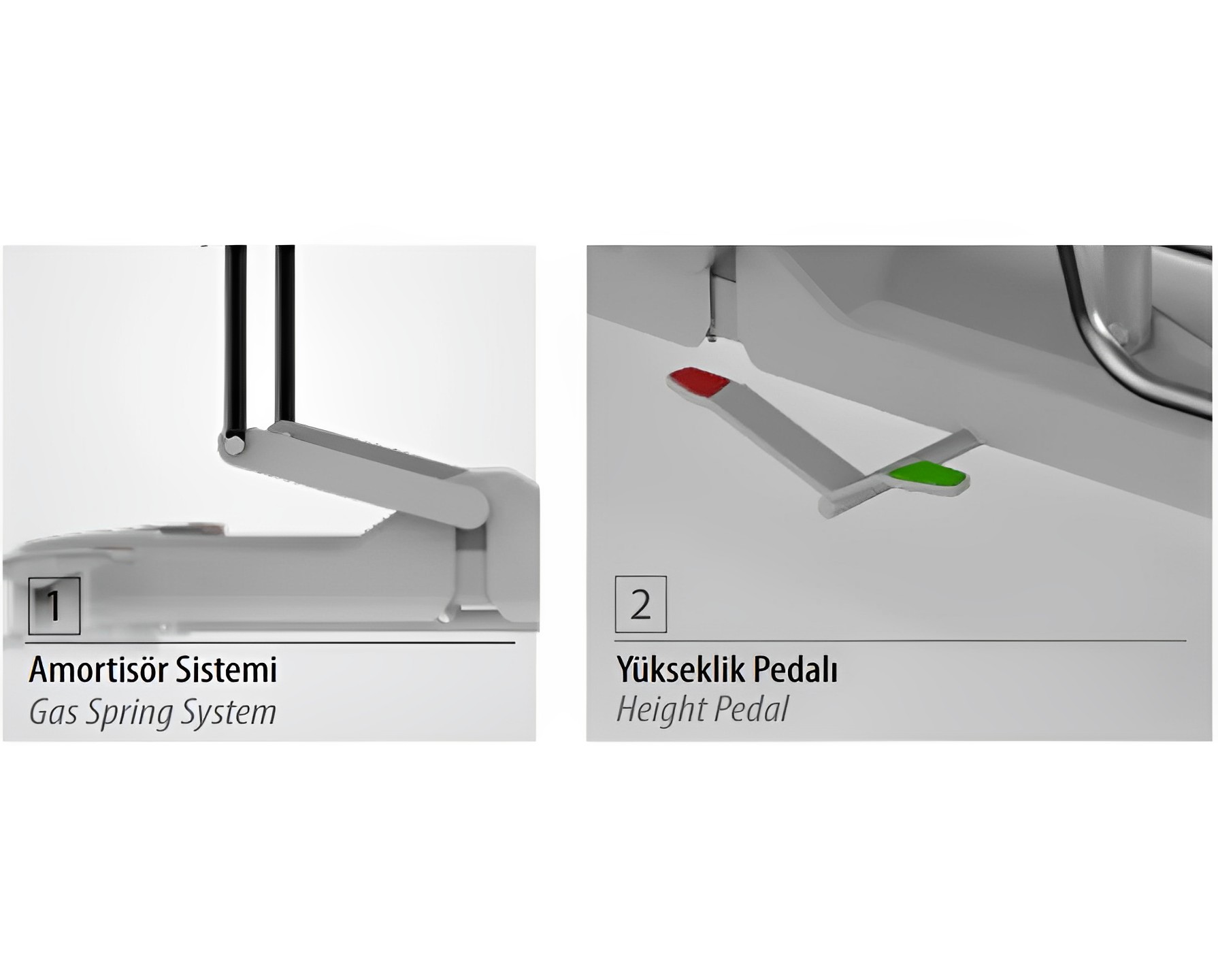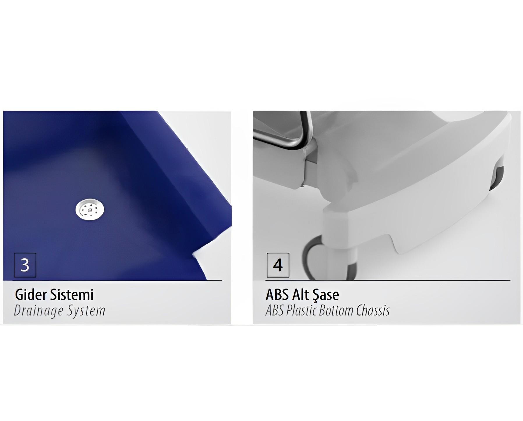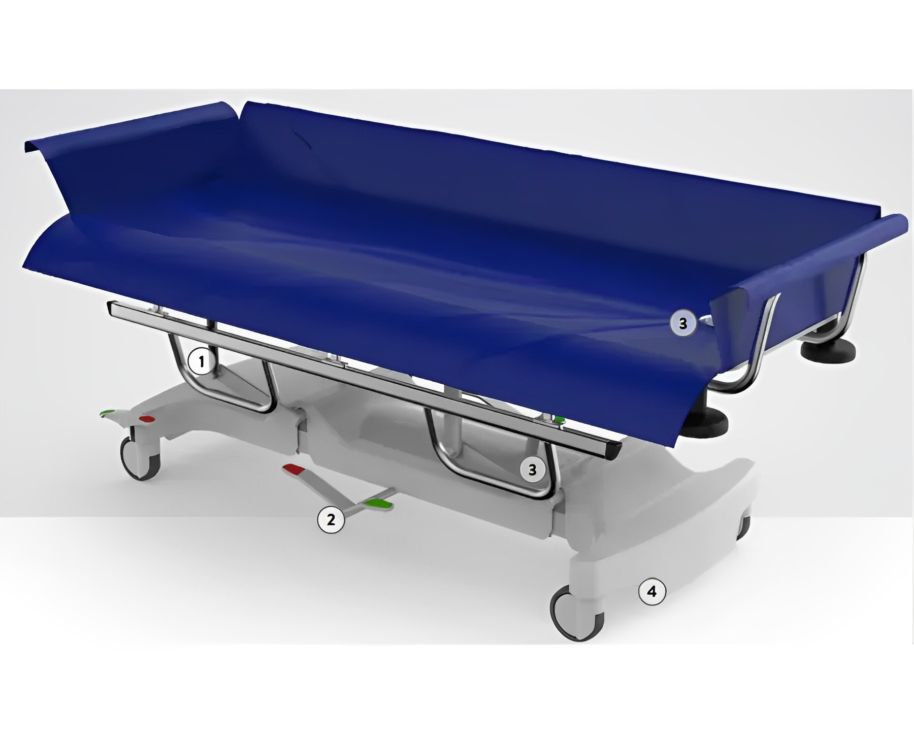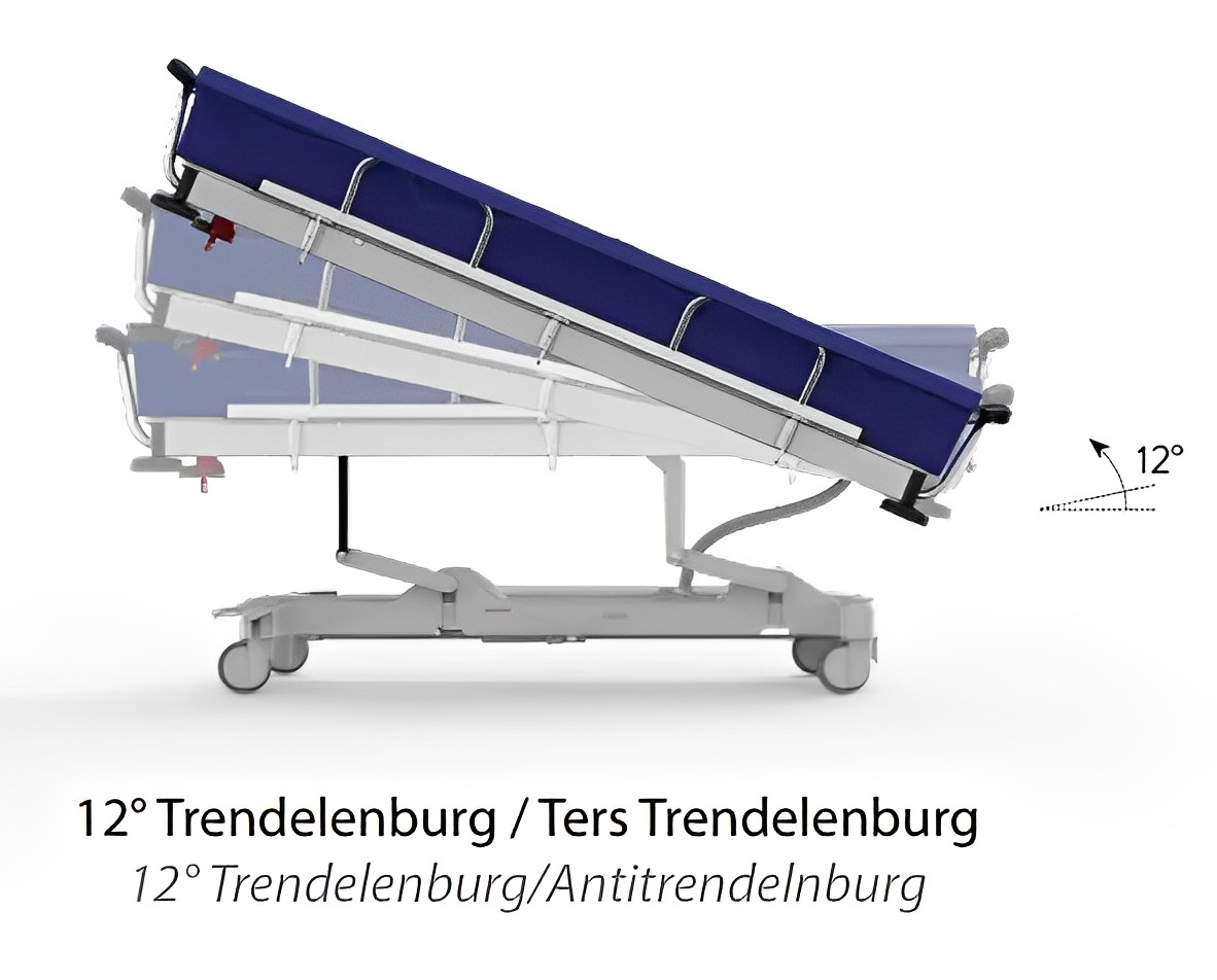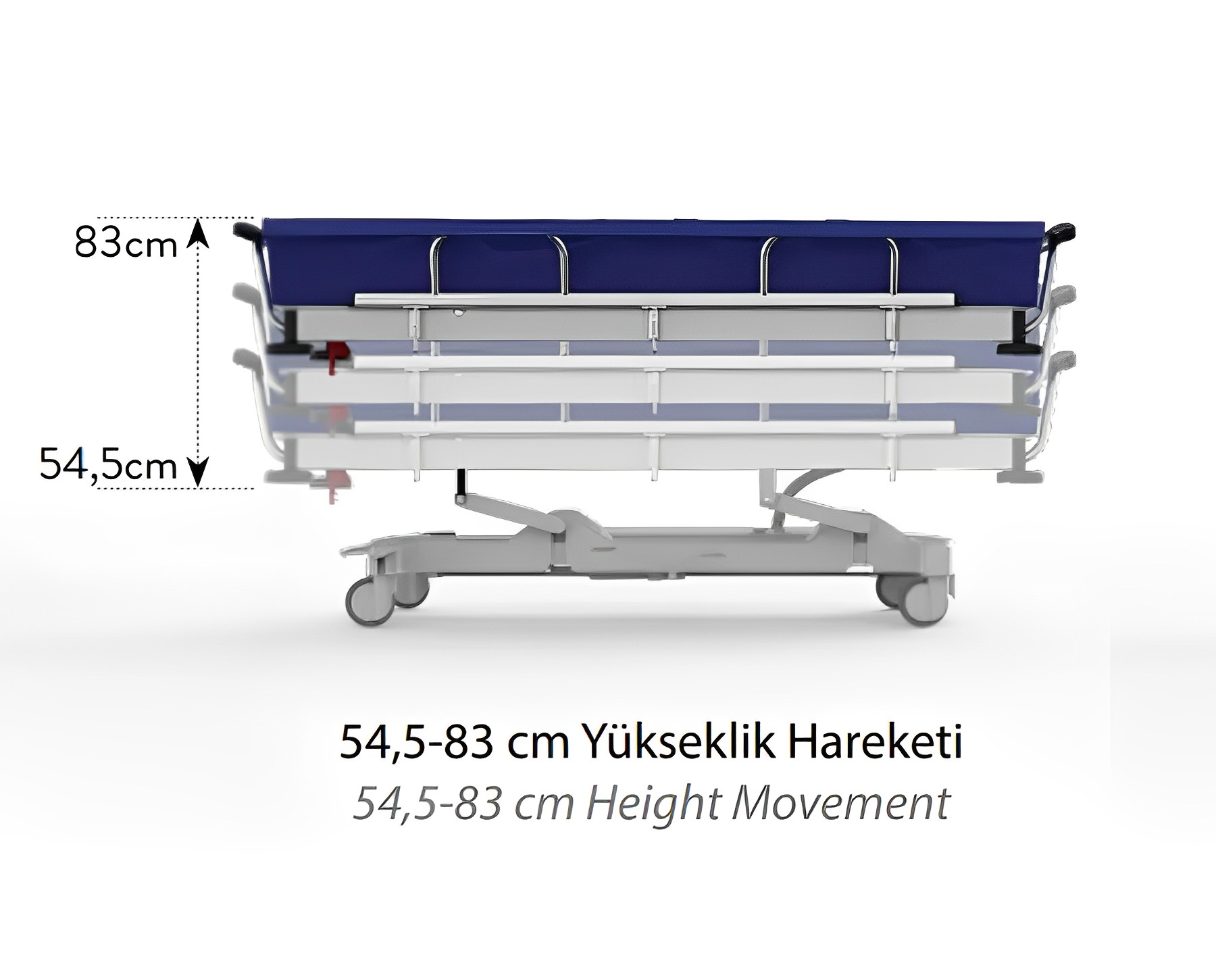 DescriptionReviews Description General featuresNano ceramic electrostatic powder coating. Metal parts are coatedThe one-piece lying surface is made of compact materialMetal side rails that can be opened and closed easilyCrash bumpers on all four cornersElectrostatic powder coated push rods360 degree swivel wheels with central braking system (150mm)Height adjustment with hydraulic controlGas spring control by Trendelenburg adjustmentABS plastic coated undercarriageSpecial fluid-resistant pool mattress Reviews Be the first to review this item There are no reviews yet