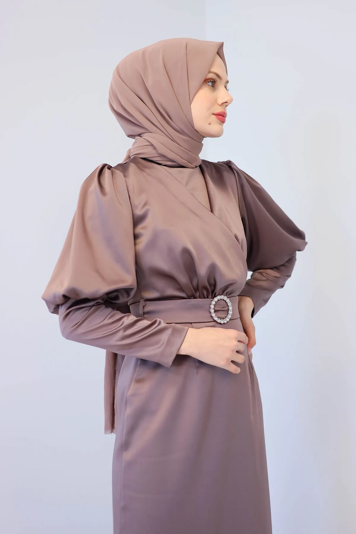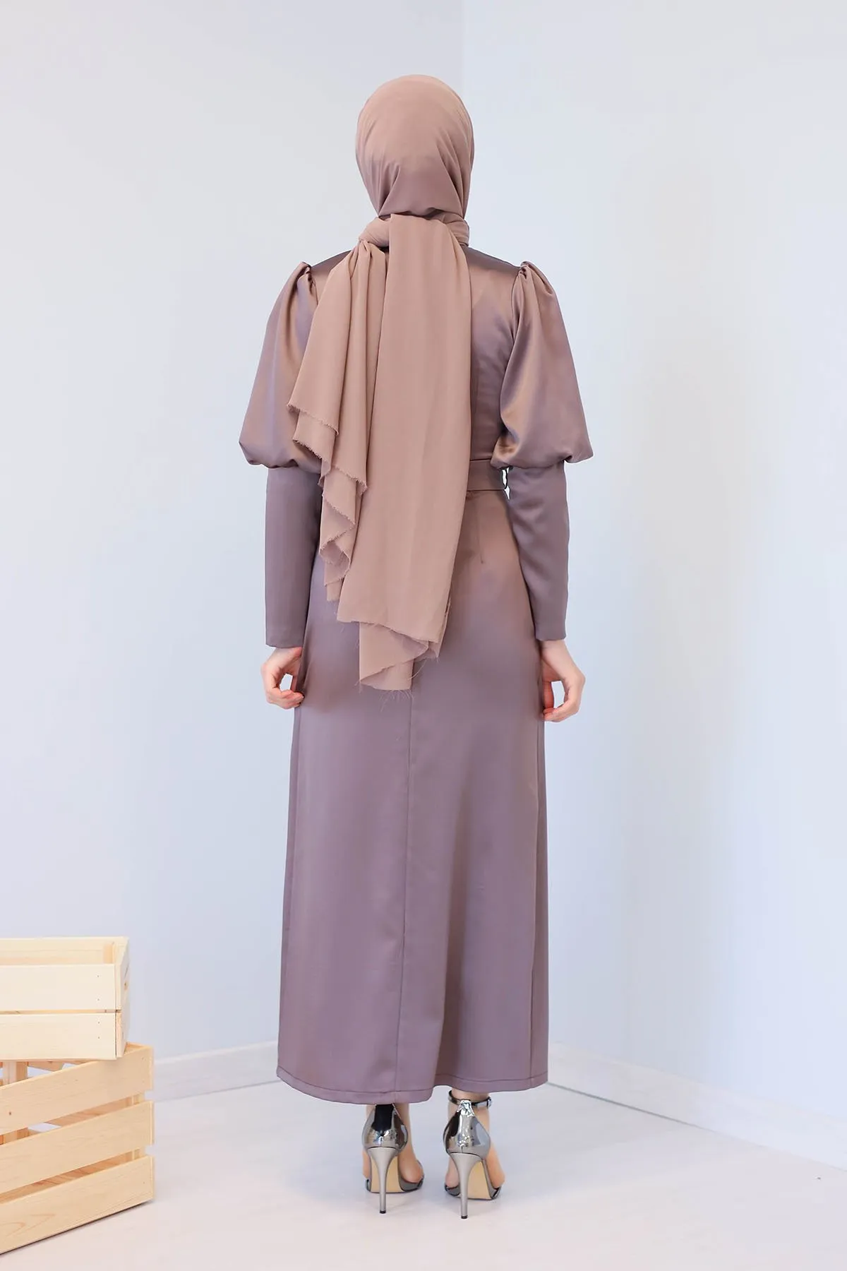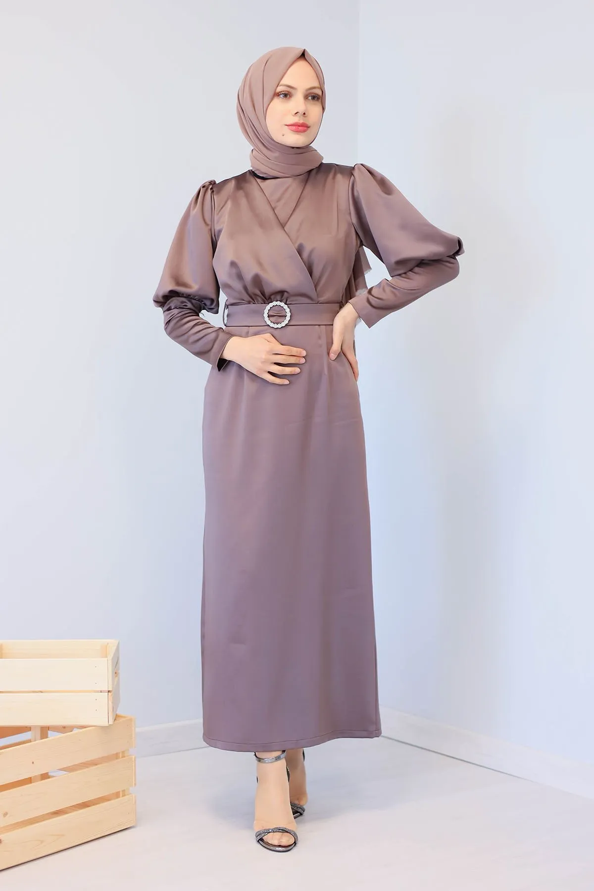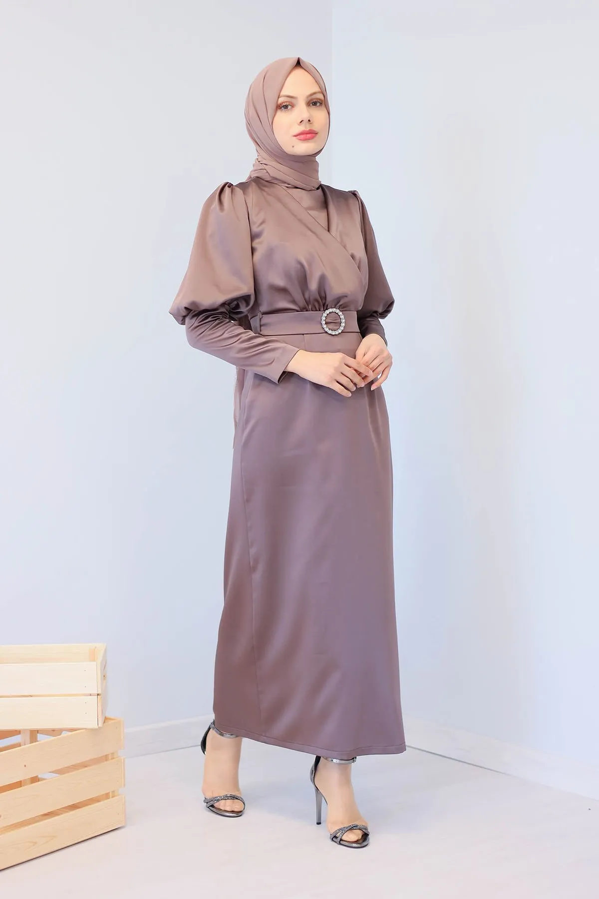 DescriptionReviews Description Satin evening dress with beige satin beltMade of satin fabric, it can be used in all seasons.It is not lined. It does not appear through it.It has a round neck, and has a zipper that can be used at the back.There is no stretch in the fabric.Product runs one size smaller.There may be a difference in product color due to shots.Washing: Dry clean onlyModel dimensions: Height: 170 cm, Chest: 82 cm, Waist: 68 cm, Hips: 84 cm, Weight: 54 kg.(The product is in model size 38)Dress Size: 40 Reviews Be the first to review this item There are no reviews yet