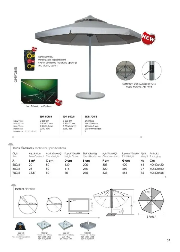 Weight 290g with water-repellent acrylic-coated polyester coating, 250g polyester wadding or 300g acrylic canvas to protect you from the sun for years to come.