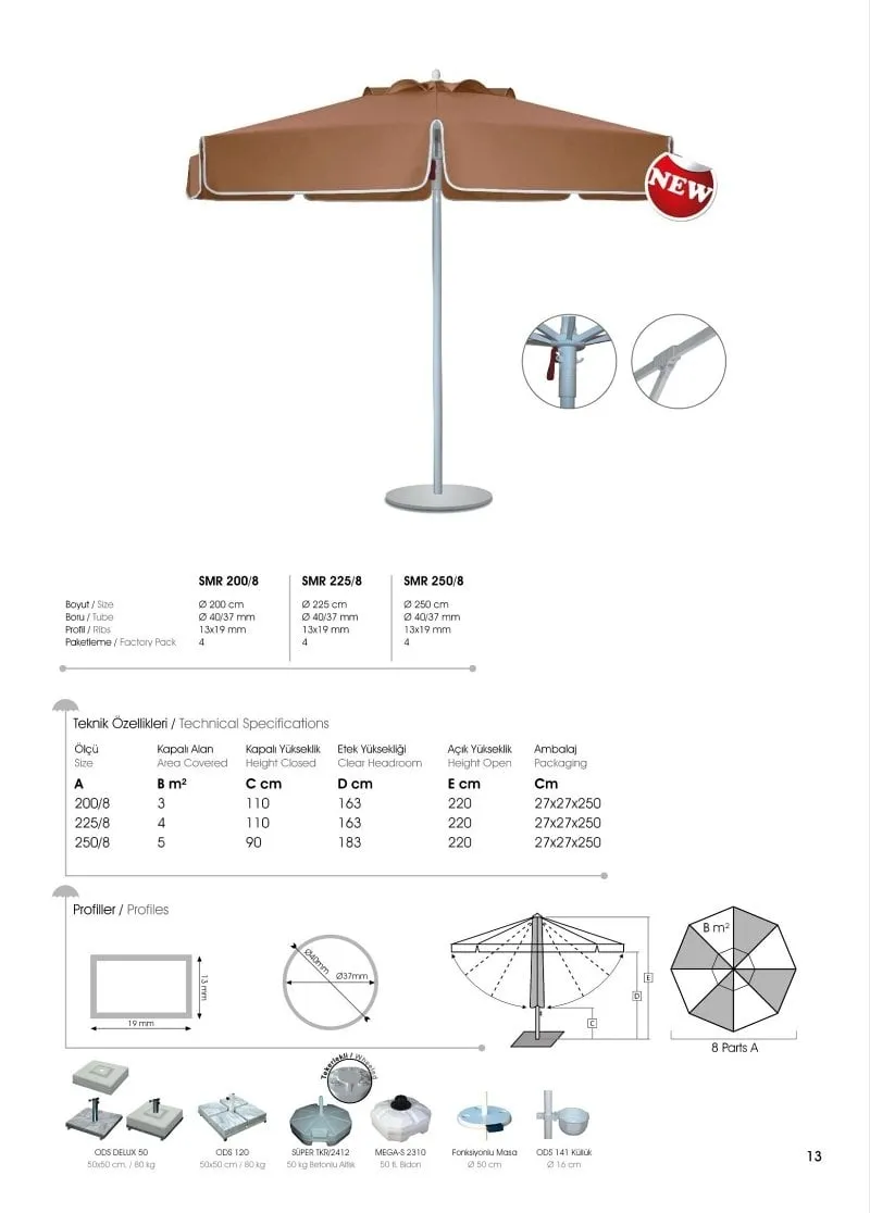 Square Round Umbrella consisting of 8 Arms Made of Aluminum,